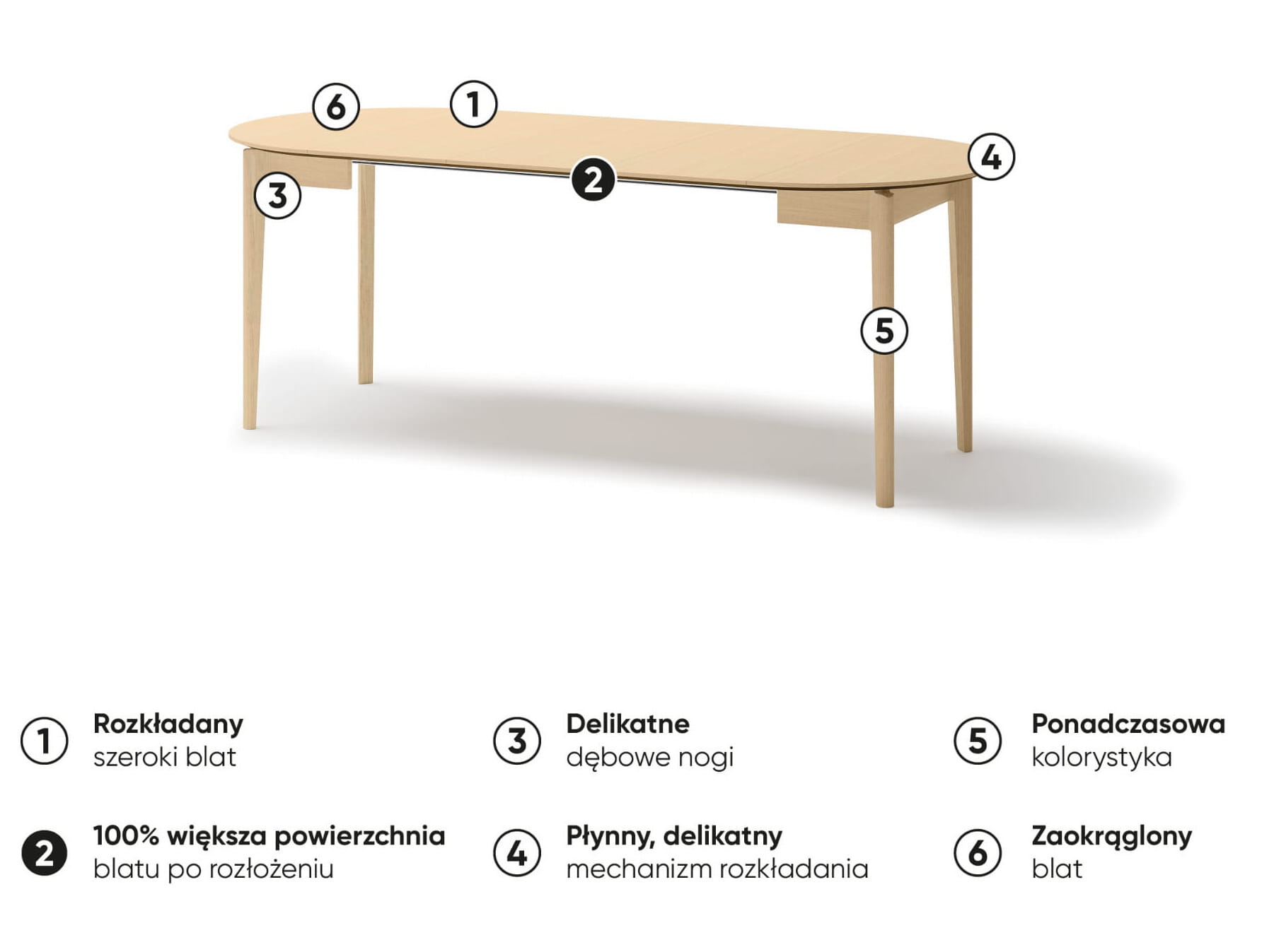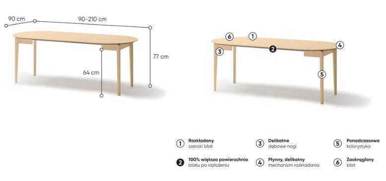 Owalny stół rozkładany 90-210 cm dąb jasny PLOT PL-05