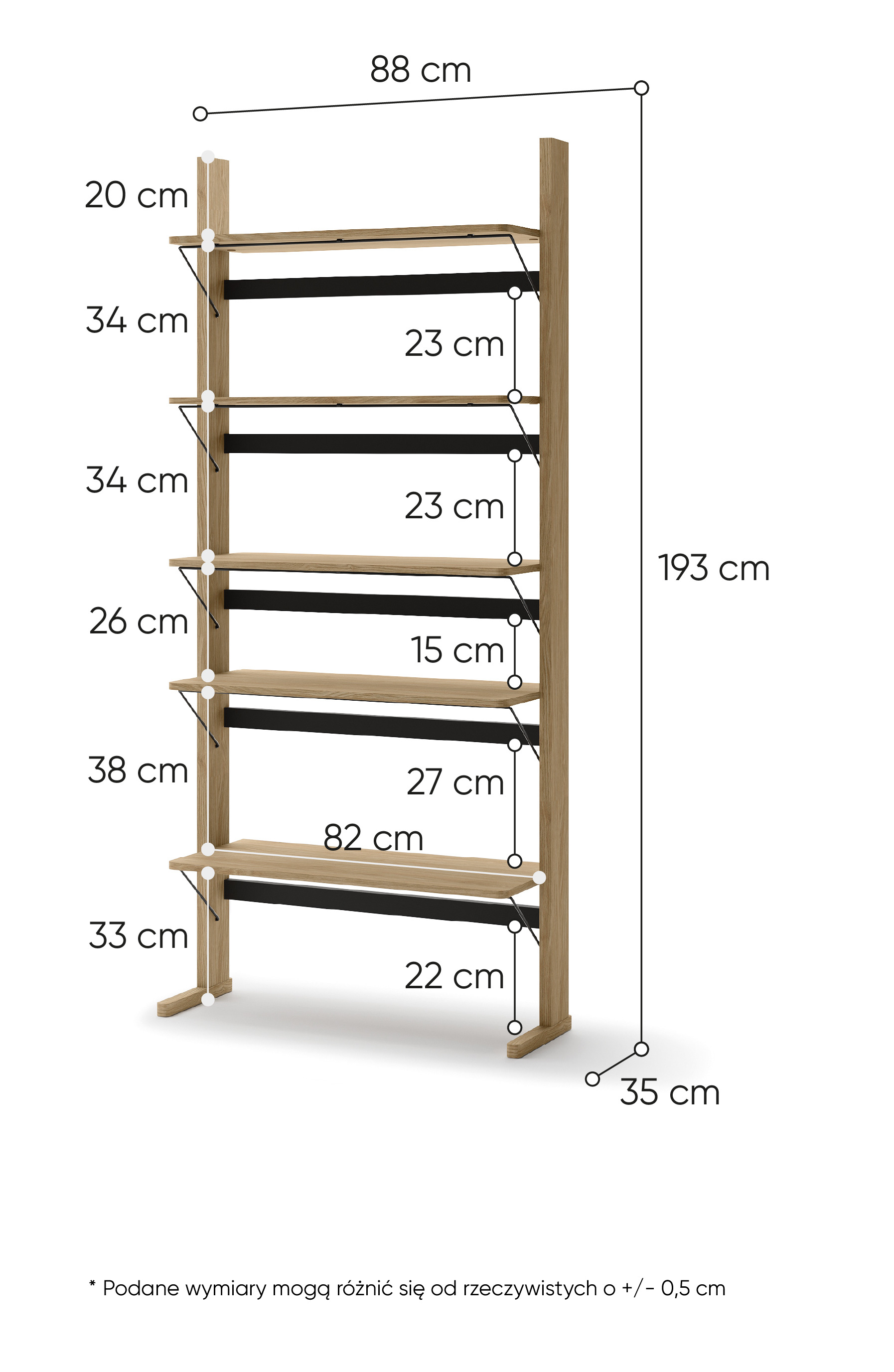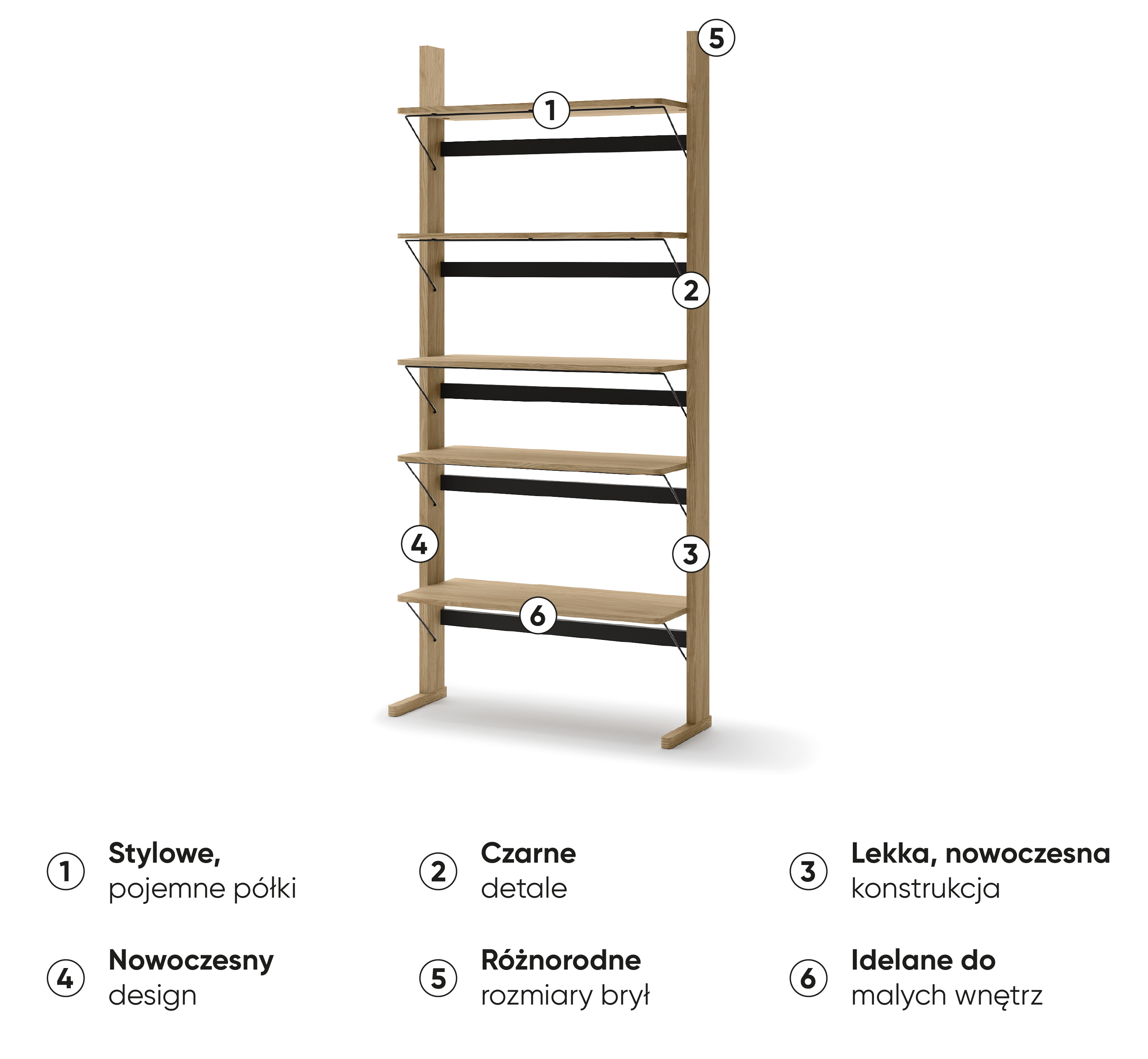 Regał OLLIE OL-05 to elegancki i pojemny mebel, idealny do przestronnych wnętrz, w których liczy się zarówno funkcjonalność, jak i styl. Jego imponująca wysokość – blisko 2 metry – oraz pięć pojemnych półek oferują mnóstwo miejsca na przechowywanie książek, dokumentów, dekoracji i innych przedmiotów codziennego użytku. Regał wykonany jest z trwałej płyty laminowanej w ciepłym odcieniu dębu olejowanego, który nadaje wnętrzu naturalny, przytulny charakter. Dzięki uniwersalnej formie i kolorystyce, OLLIE OL-05 doskonale komponuje się zarówno z nowoczesnymi, jak i klasycznymi aranżacjami. To idealne rozwiązanie dla osób, które chcą połączyć estetykę z praktycznością w większej przestrzeni.