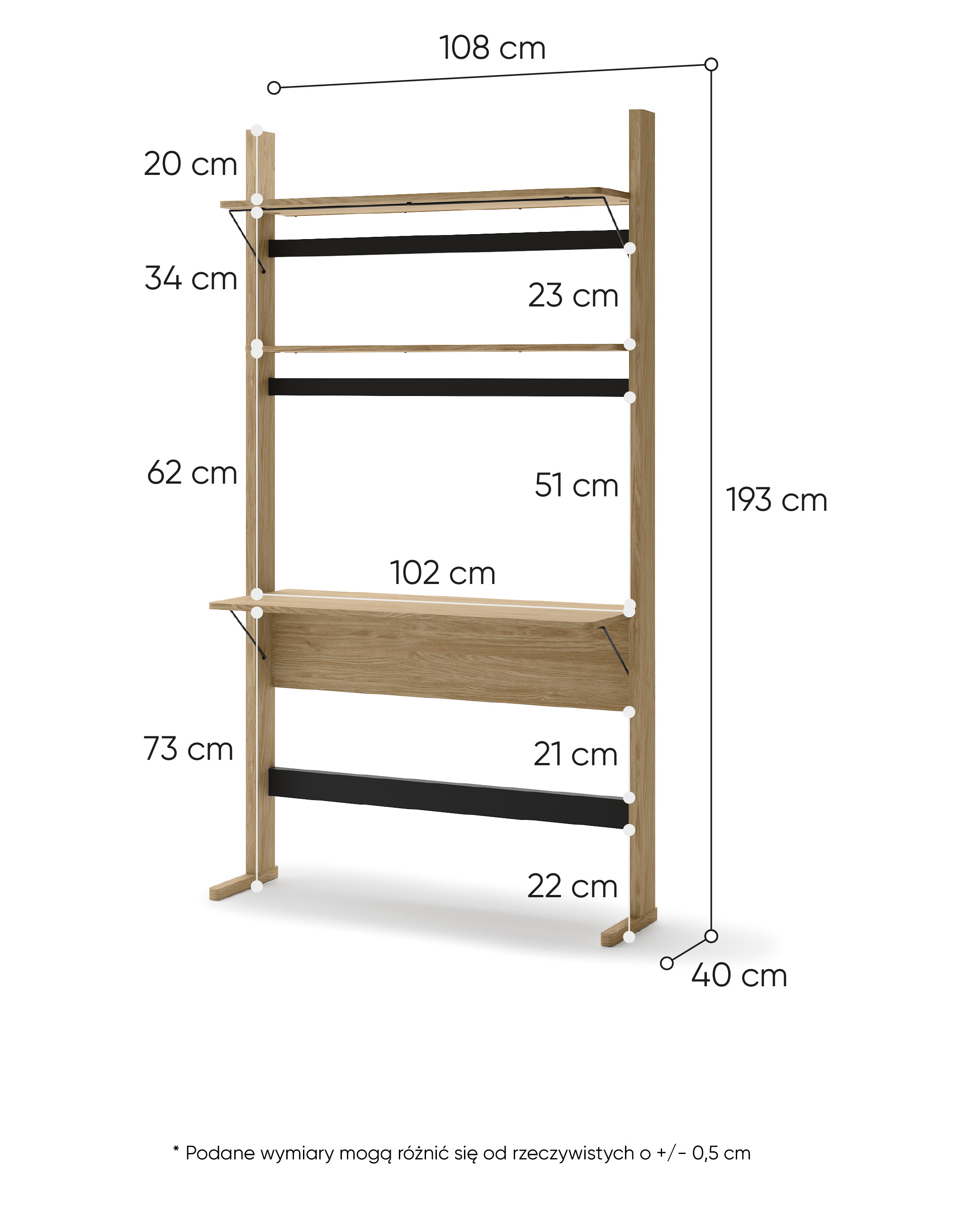 Regał z biurkiem i półkami 108 cm OLLIE OL-04