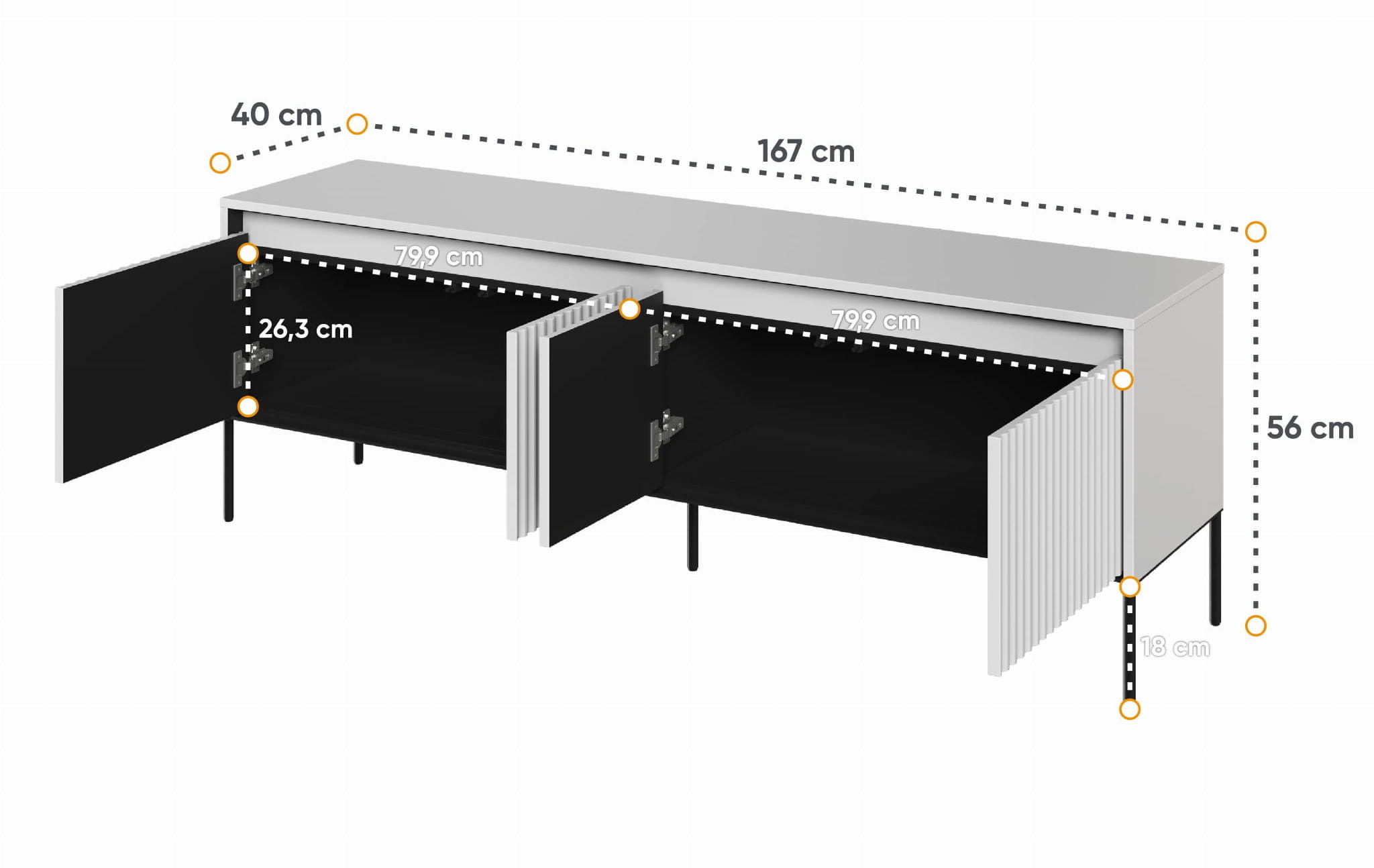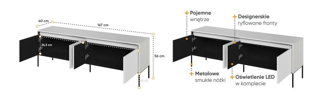 Biała Szafka RTV 167 cm pod telewizor na nóżkach LED TREND TR-05