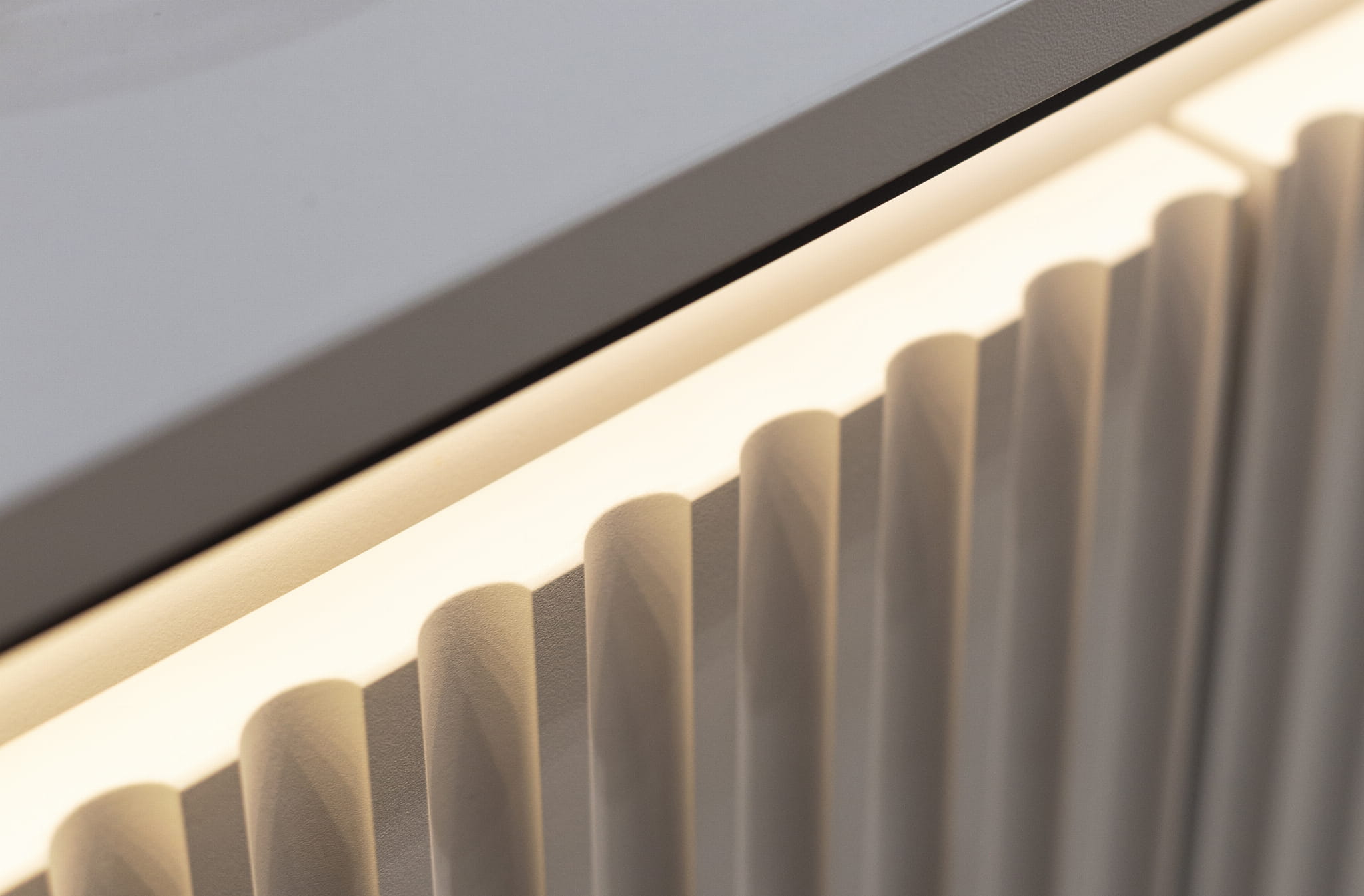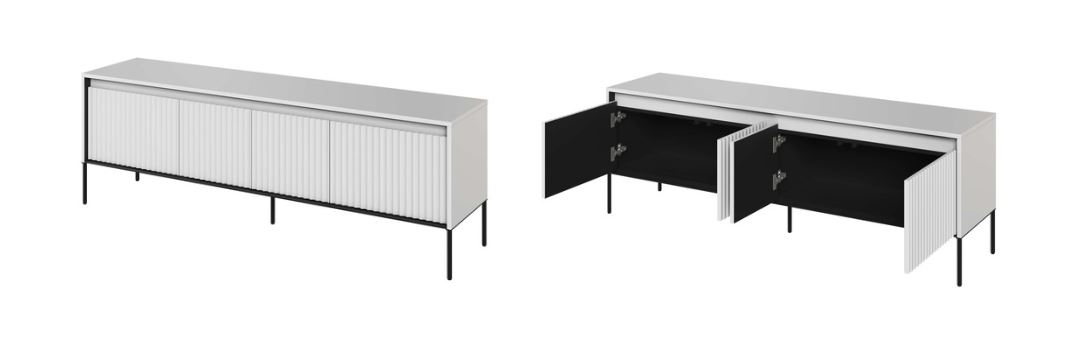 Szafka RTV 05 z kolekcji TREND to elegancki i funkcjonalny mebel, który doskonale sprawdzi się w nowoczesnym salonie. Oferuje przestronną powierzchnię do przechowywania sprzętu audiowizualnego, a długość blatu została dopasowana do współczesnych telewizorów. Fronty szafki są ryflowane, a ich wygląd zmienia się w zależności od wybranego koloru. Mebel oparty jest na czarnych nóżkach, co dodaje mu lekkości i nowoczesnego charakteru. Szafka RTV TREND to doskonały wybór do wnętrz, gdzie liczy się zarówno estetyka, jak i funkcjonalność.
