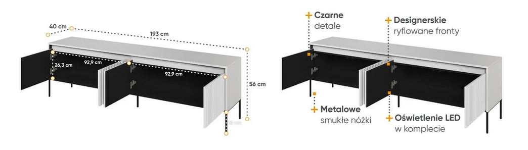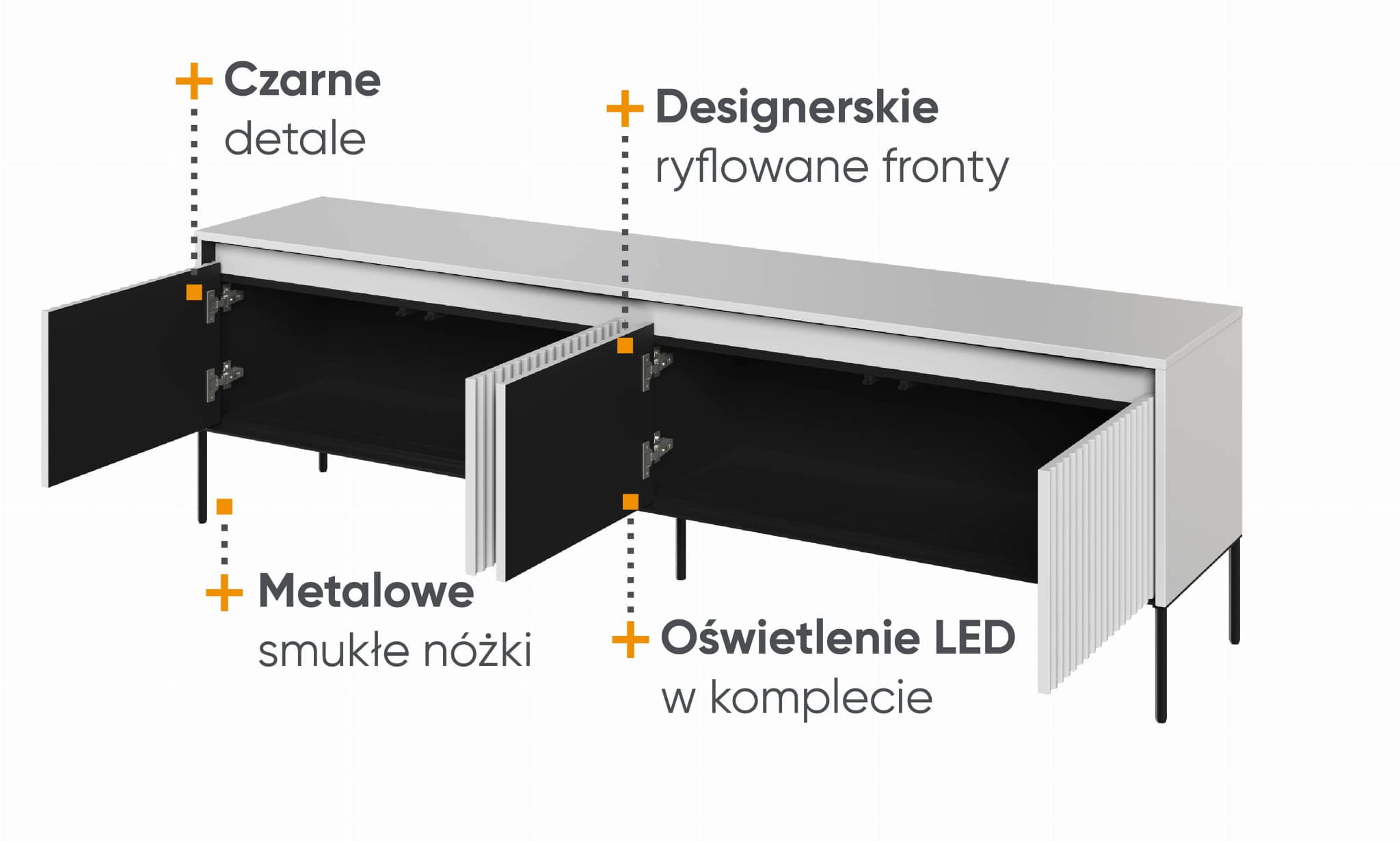 Biała szafka RTV 193 cm pod telewizor na nóżkach LED TREND TR-06