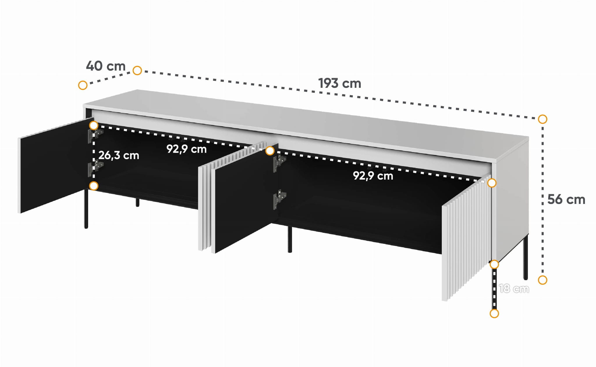 Biała Szafka RTV 193 cm pod telewizor na nóżkach LED TREND TR-06