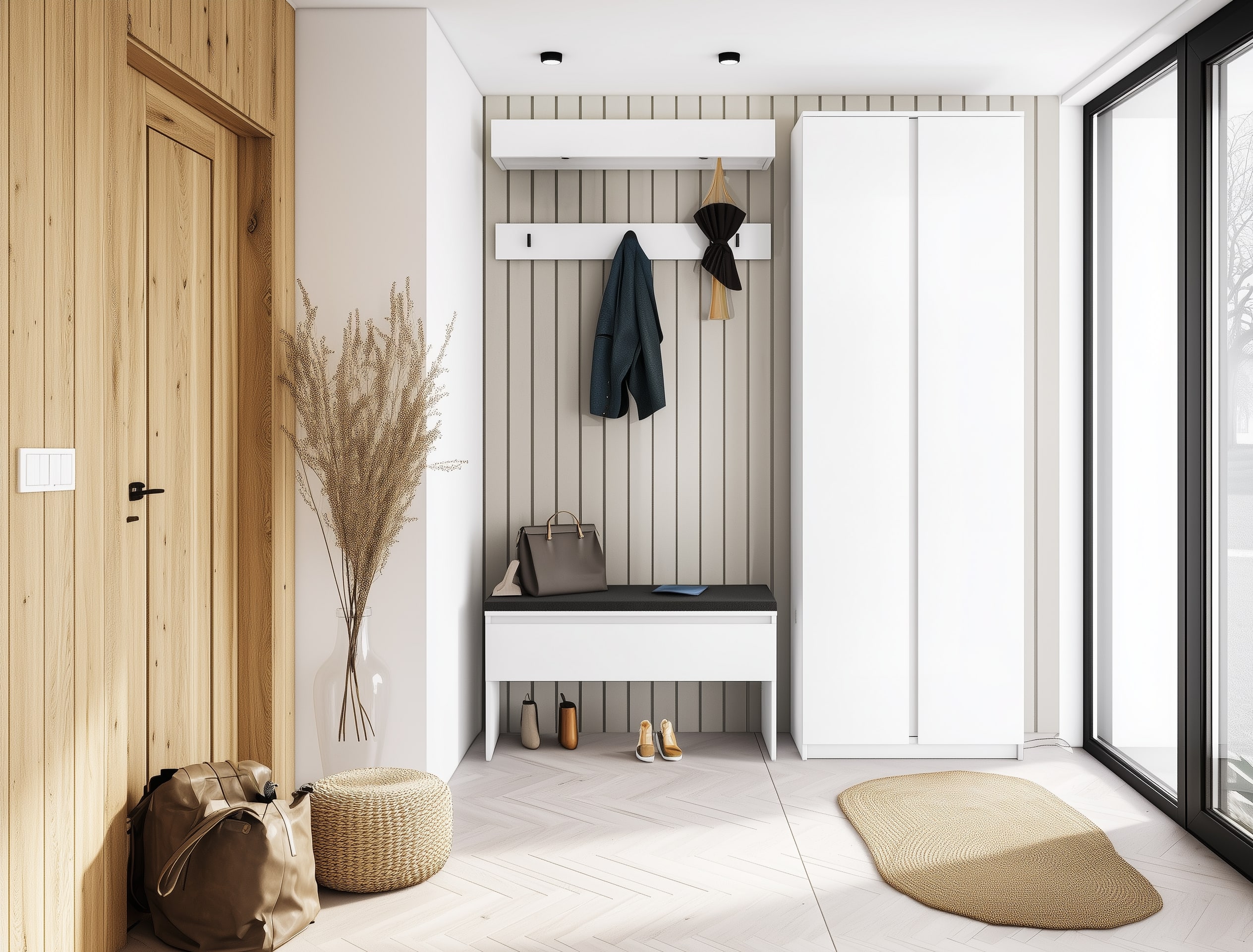 SIMPLY SM-03 to stylowe siedzisko, zaprojektowane z myślą o wygodzie i porządku w przedpokoju. Wykonane z solidnej płyty laminowanej w eleganckim, neutralnym kolorze, doskonale komponuje się z różnymi stylami wnętrz – od nowoczesnych po klasyczne. Miękkie, tapicerowane siedzisko pokryte jest trwałą, ciemną tkaniną, która nie tylko zapewnia komfort podczas zakładania i zdejmowania obuwia, ale także skutecznie maskuje drobne zabrudzenia, co czyni mebel wyjątkowo praktycznym w codziennym użytkowaniu. Przemyślana konstrukcja obejmuje dwie zamykane komory oraz otwartą przestrzeń na dole – idealną do przechowywania butów lub innych niezbędnych przedmiotów. Prosta forma, wysoka jakość wykonania i funkcjonalność czynią z SIMPLY SM-03 nie tylko wygodne siedzisko, ale także estetyczny i praktyczny element wyposażenia każdego przedpokoju.