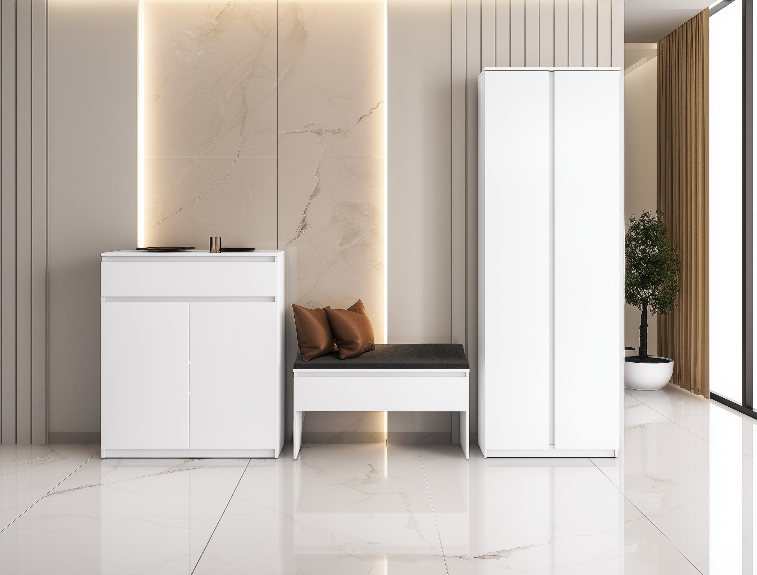 Białe siedzisko z szafką na buty SIMPLY SM-03