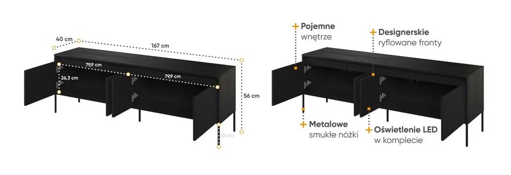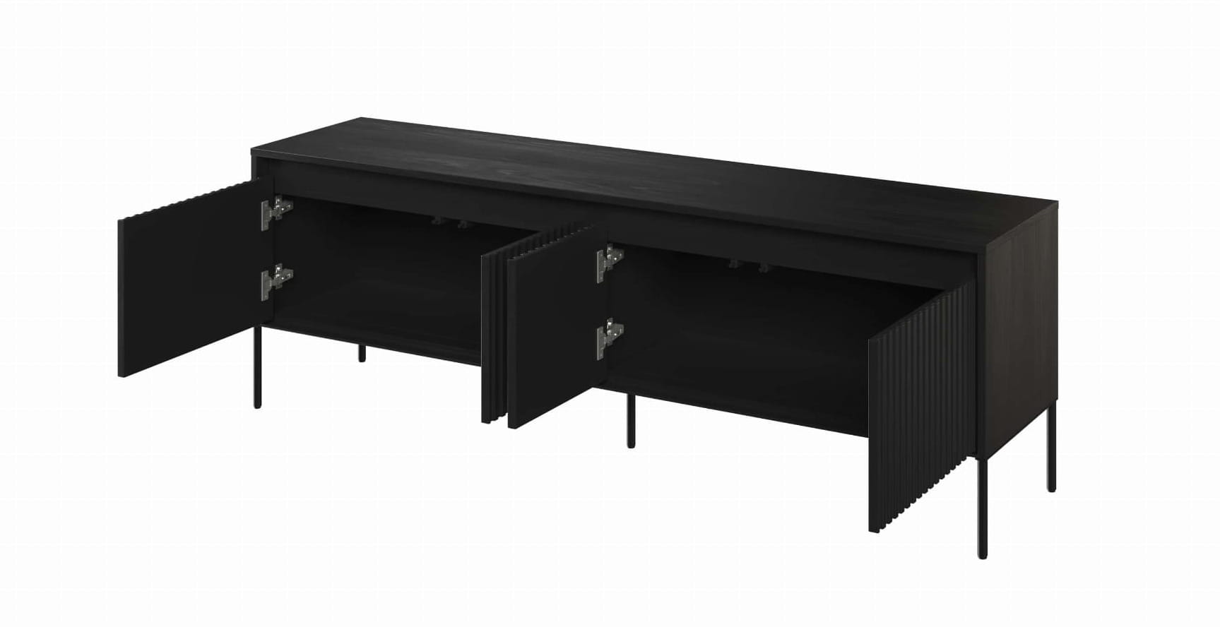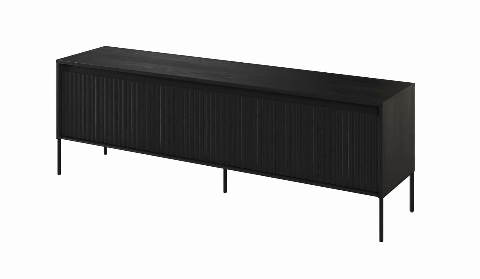 Szafka RTV 05 z kolekcji TREND to elegancki i funkcjonalny mebel, który doskonale sprawdzi się w nowoczesnym salonie. Oferuje przestronną powierzchnię do przechowywania sprzętu audiowizualnego, a długość blatu została dopasowana do współczesnych telewizorów. Fronty szafki są ryflowane, a ich wygląd zmienia się w zależności od wybranego koloru. Mebel oparty jest na czarnych nóżkach, co dodaje mu lekkości i nowoczesnego charakteru. Szafka RTV TREND to doskonały wybór do wnętrz, gdzie liczy się zarówno estetyka, jak i funkcjonalność.