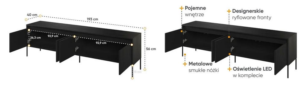 Czarna szafka RTV 193 cm pod telewizor na nóżkach LED TREND TR-06