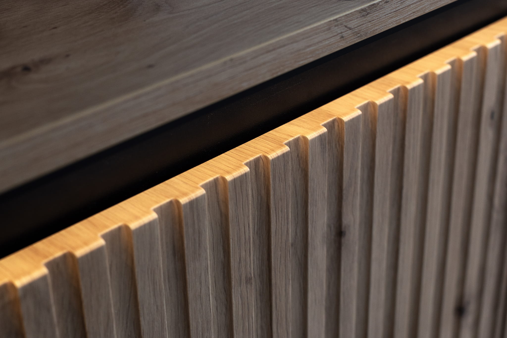 front - frezowanie proste; płyta MDF; 18mm (artisan/czarny i czarny) / półwałek (beż / czarny) półkole (szary/czarny i biały/czarny)