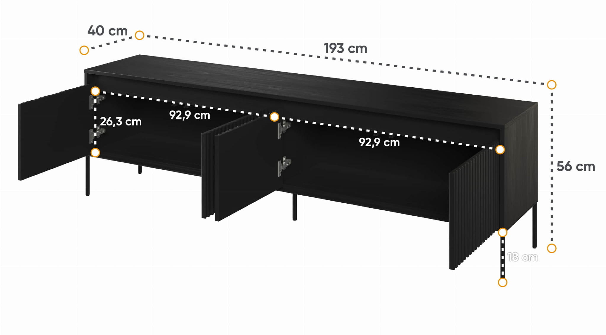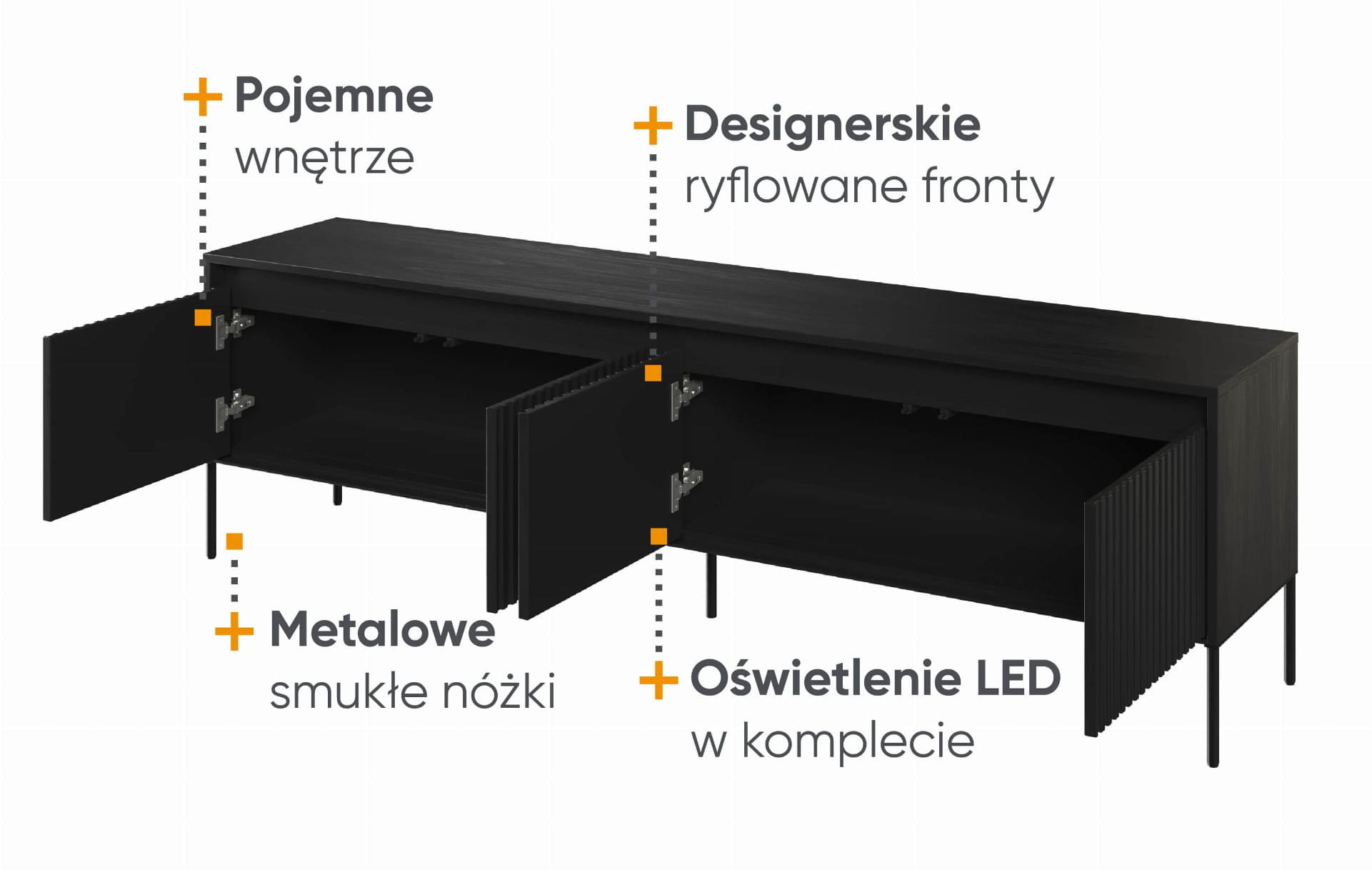 Szafka pod telewizor TREND TR-06 to elegancka i funkcjonalna bryła o szerokości 193 cm, która doskonale łączy nowoczesny design z praktycznością. Została zaprojektowana z myślą o dużej przestrzeni do przechowywania, oferując mnóstwo miejsca na sprzęt audiowizualny oraz inne przedmioty codziennego użytku. Dwie szafki, zestawione z ciemną podstawą, tworzą harmonijną i elegancką całość. Smukłe metalowe nóżki, na których opiera się cała konstrukcja, dodają meblowi lekkości, mimo jego dużych rozmiarów. Ryflowane fronty świetnie komponują się z podświetleniem LED, które stanowi dodatkowy atut, tworząc wyjątkową atmosferę w pomieszczeniu. W naszej ofercie dostępny jest także mniejszy wariant TREND-05.