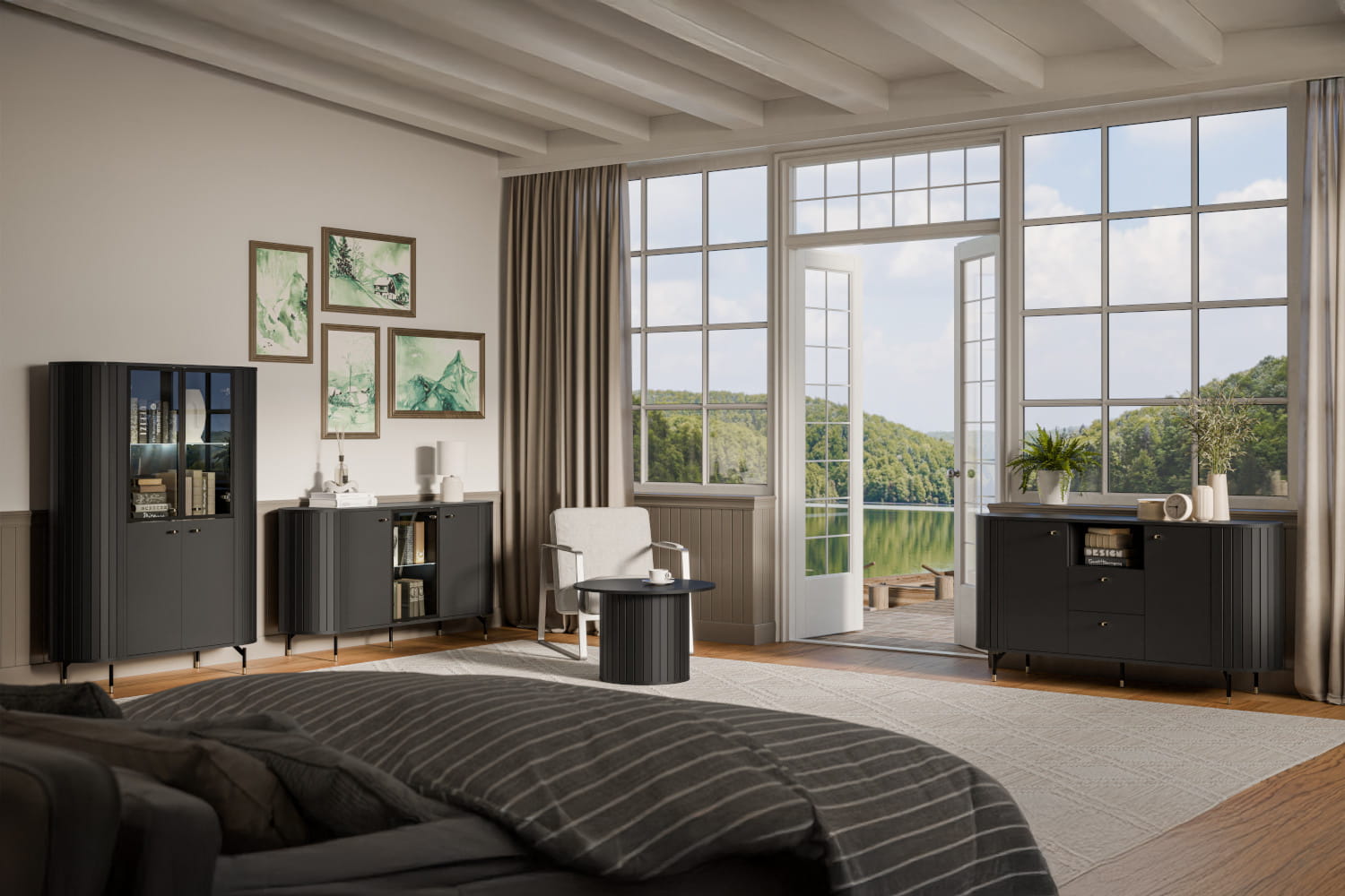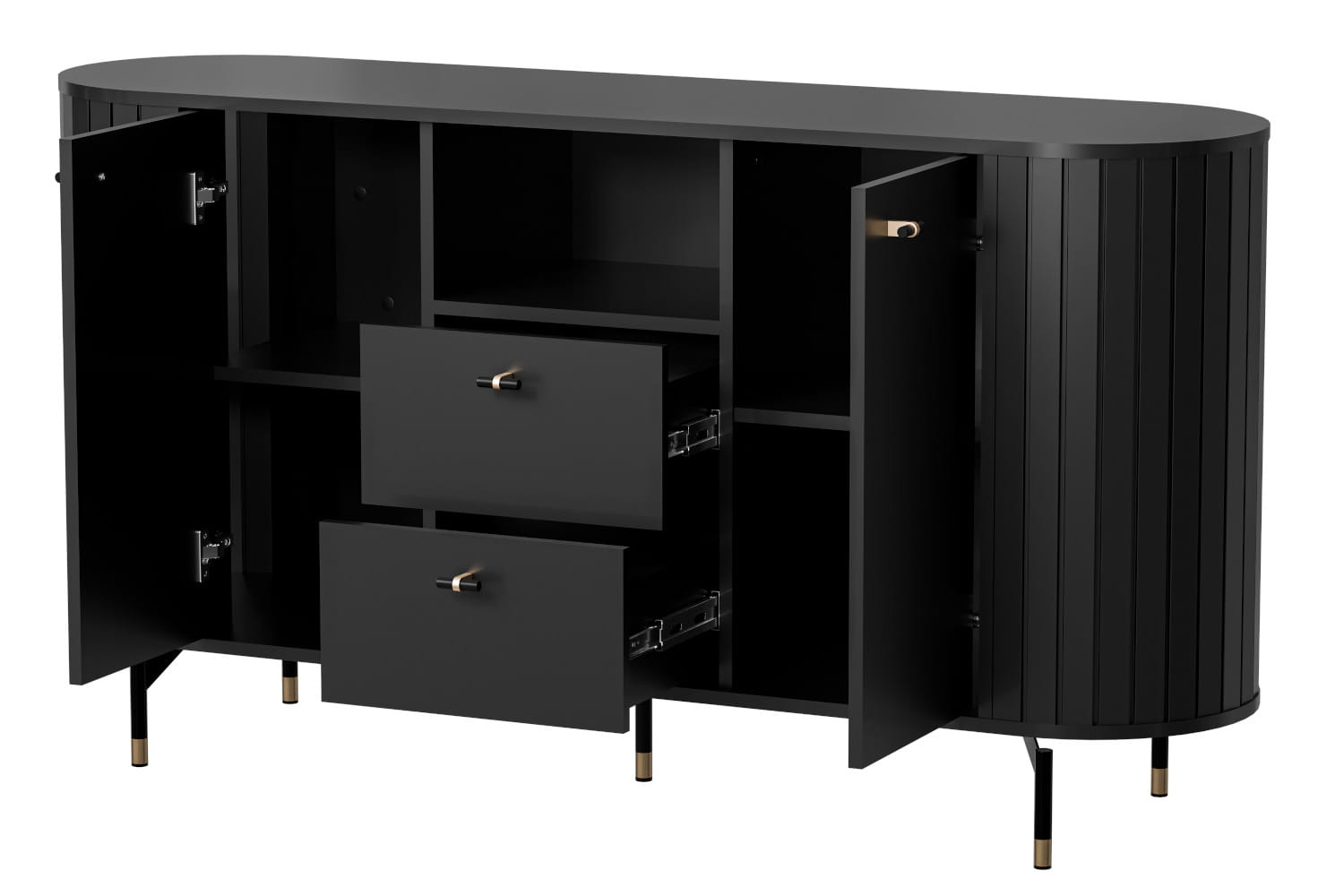 Szeroka komoda ZANTE 150 cm to doskonałe rozwiązanie dla osób poszukujących przestrzeni do przechowywania bez kompromisu w kwestii stylu. Zaokrąglone, ryflowane fronty w połączeniu ze smukłymi nóżkami nadają jej subtelnej elegancji i wizualnej lekkości. Komoda ZANTE łączy w sobie funkcjonalność z wyjątkowym designem, stając się nie tylko praktycznym meblem, ale i ozdobą każdego wnętrza.
