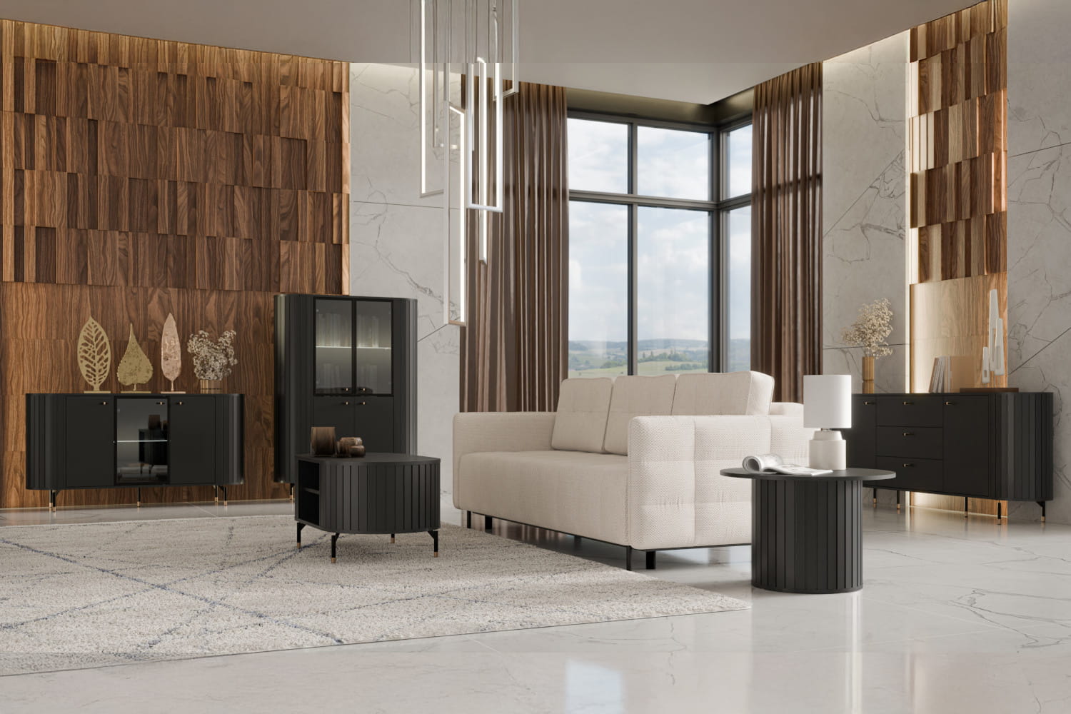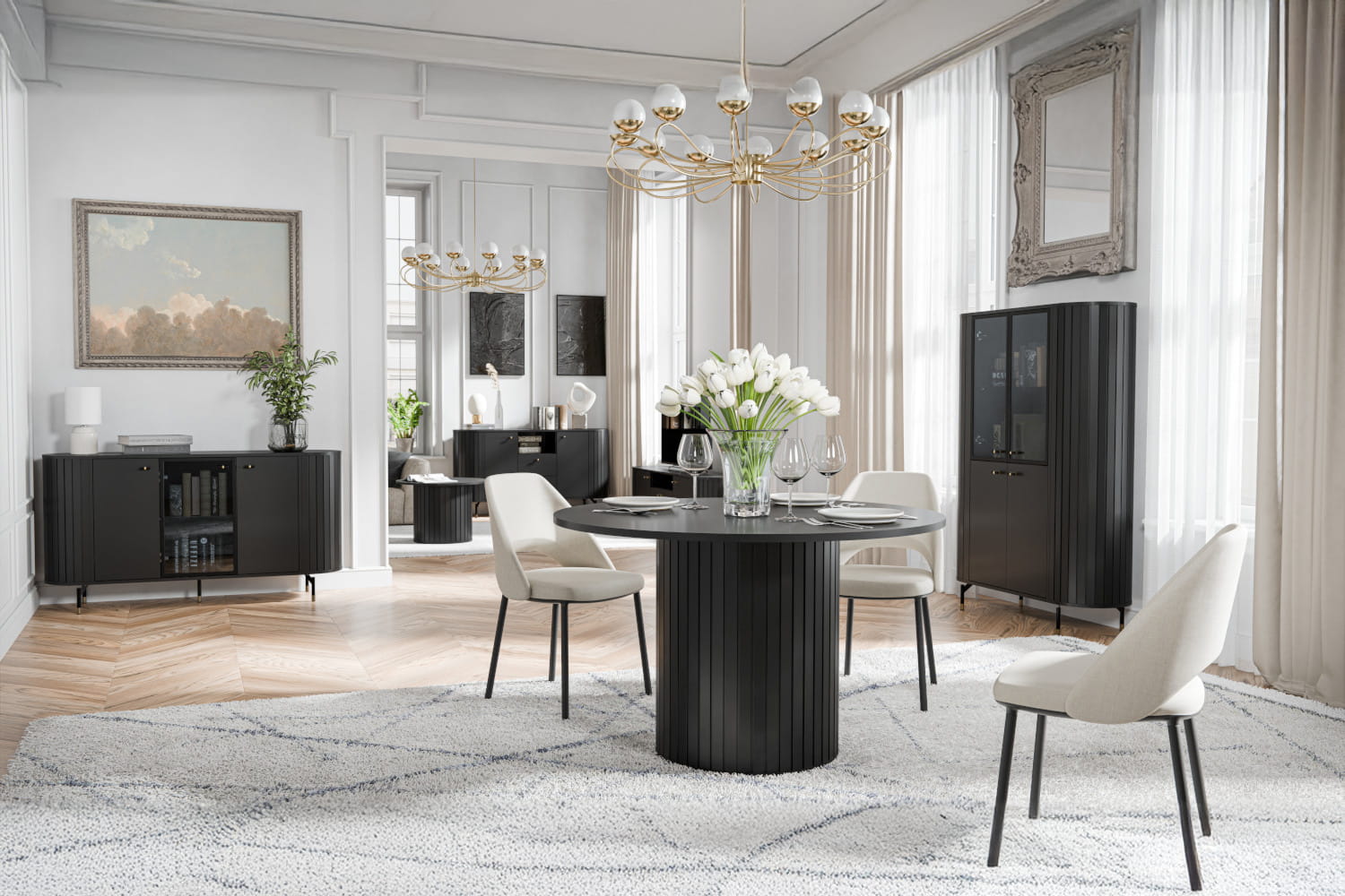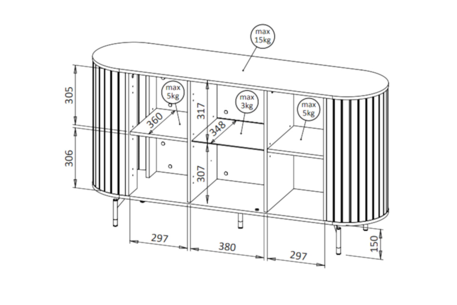Szeroka komoda ZANTE 150 cm to doskonałe rozwiązanie dla osób poszukujących przestrzeni do przechowywania bez kompromisu w kwestii stylu. Zaokrąglone, ryflowane fronty w połączeniu ze smukłymi nóżkami nadają jej subtelnej elegancji i wizualnej lekkości. Komoda ZANTE łączy w sobie funkcjonalność z wyjątkowym designem, stając się nie tylko praktycznym meblem, ale i ozdobą każdego wnętrza.