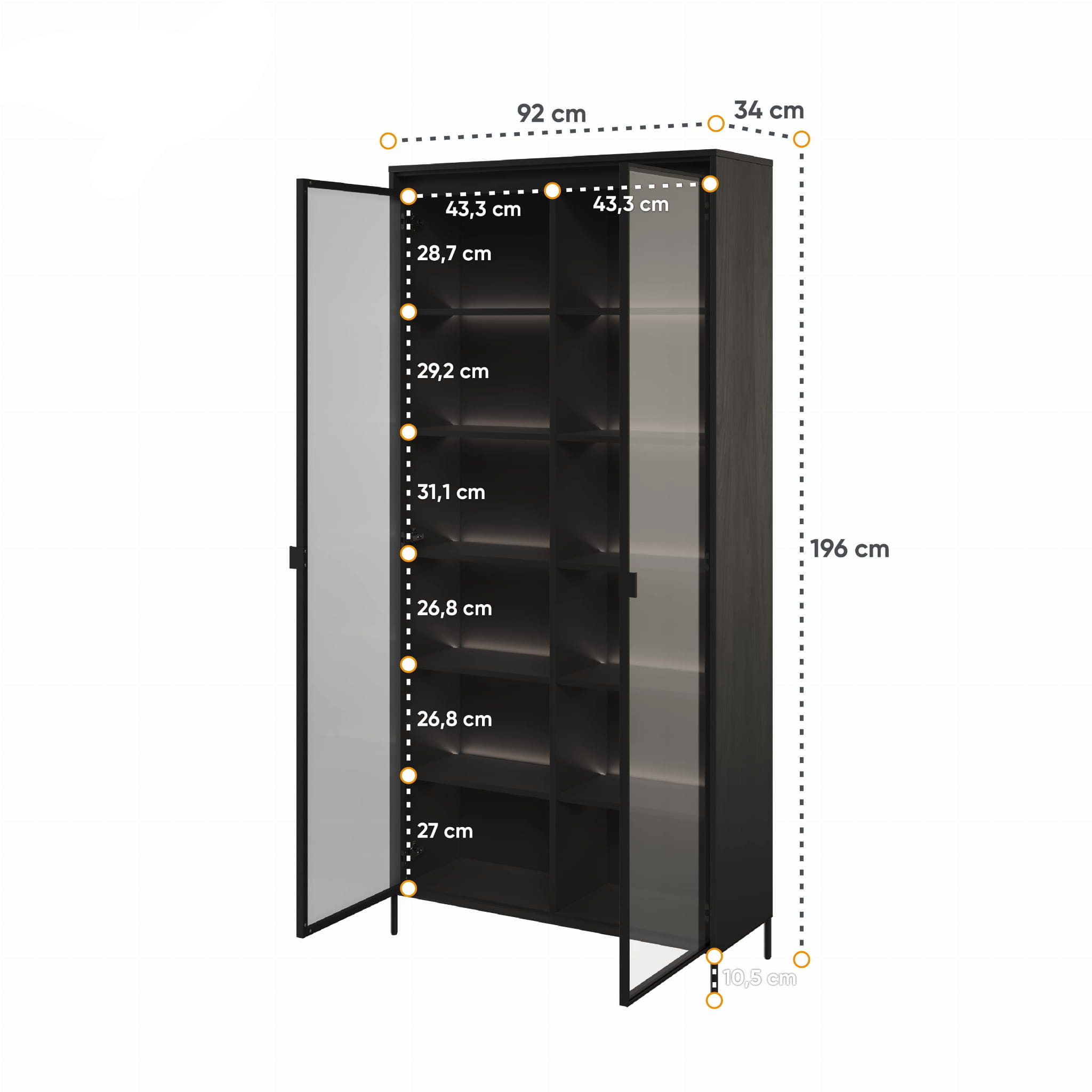 Wysoka witryna TREND TR-07 to doskonały wybór dla osób szukających eleganckiego sposobu na wyeksponowanie dekoracji. Wyposażona w przeszklone drzwiczki i przestronne półki z wytrzymałej płyty, witryna łączy nowoczesny design z funkcjonalnością. Smukłe nóżki nadają jej lekkości, a pasek LED pod górnym blatem subtelnie oświetla wnętrze. Dodatkowo, możliwość dokupienia oświetlenia LED na półki pozwala na urozmaicenie wyglądu mebla. Witryna doskonale sprawdzi się w salonie, jadalni czy przedpokoju, wprowadzając do wnętrza elegancję i nowoczesny charakter.
