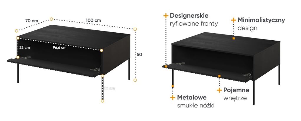 Czarny stolik kawowy do salonu 100 cm - TREND TR-09