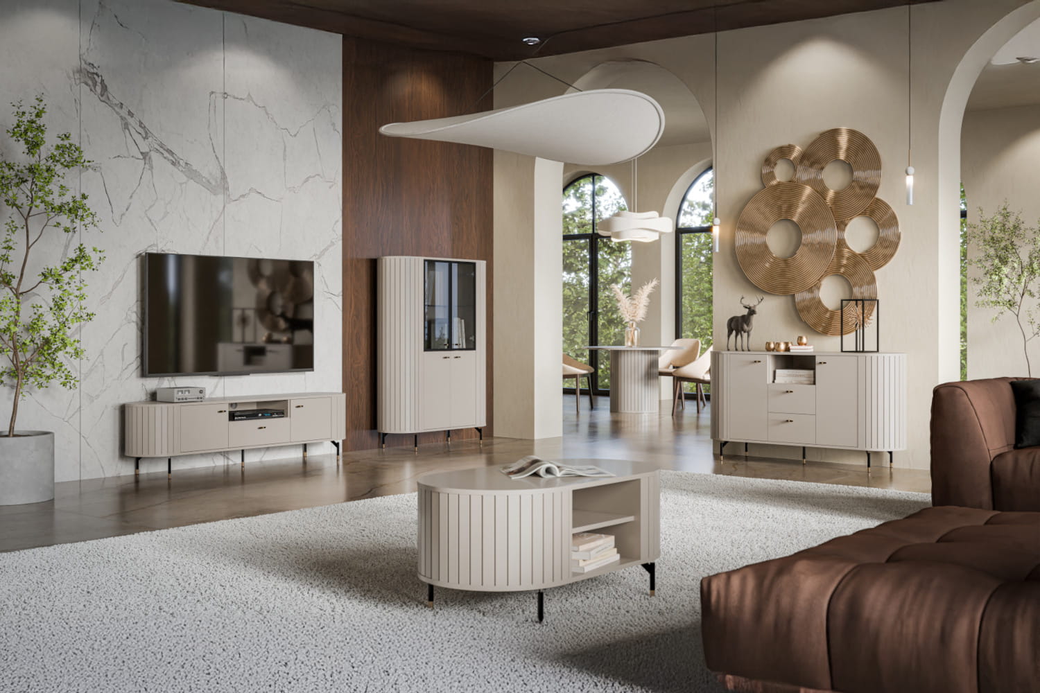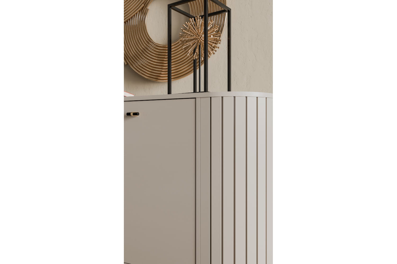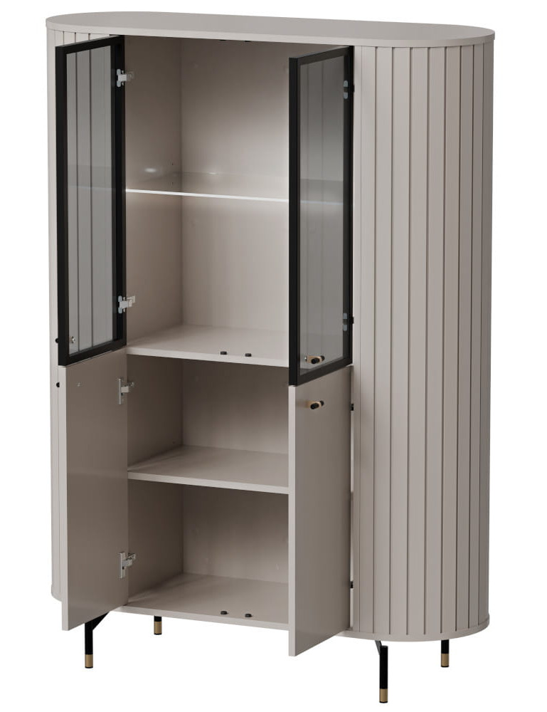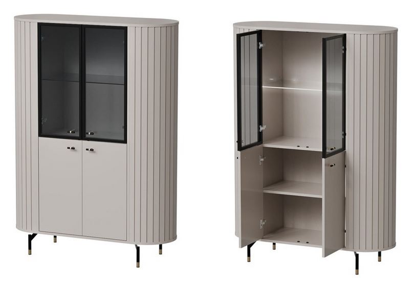 Witryna z kolekcji ZANTE to doskonałe połączenie stylu i praktyczności. Za szklanymi elementami wyeksponujesz swoje ulubione książki, porcelanę czy dekoracje, które będą pięknie widoczne, a jednocześnie chronione przed kurzem. Zaokrąglone kształty i smukłe nóżki nadają konstrukcji lekkości, a ryflowane detale wprowadzają subtelną, nowoczesną elegancję. Dostępna w dwóch ponadczasowych wersjach kolorystycznych – ciepłym odcieniu kaszmiru i głębokiej czerni – łatwo dopasuje się do różnych aranżacji wnętrz. Opcjonalne podświetlenie LED doda ekspozycji wyjątkowego charakteru i stworzy przytulny klimat w pomieszczeniu. Witryna ZANTE to nie tylko mebel – to stylowy akcent, który dopełni każde wnętrze.