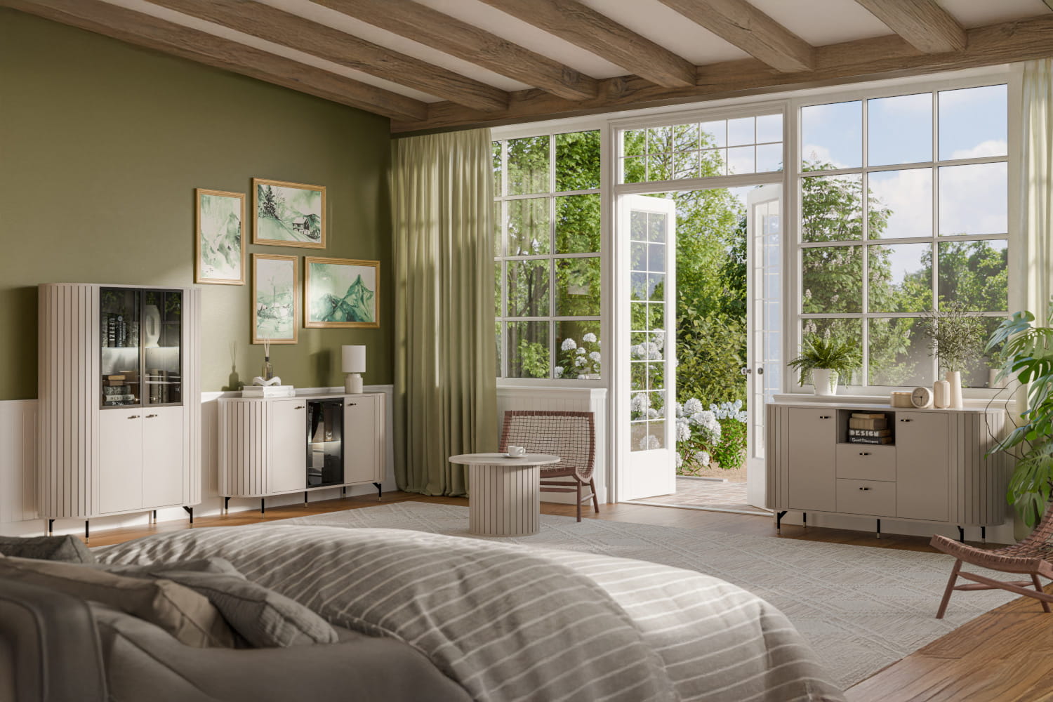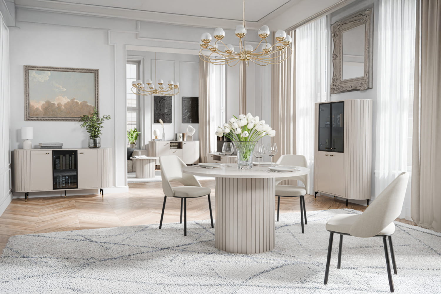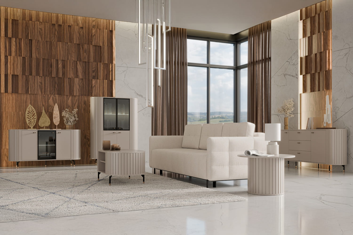 Witryna z kolekcji ZANTE to doskonałe połączenie stylu i praktyczności. Za szklanymi elementami wyeksponujesz swoje ulubione książki, porcelanę czy dekoracje, które będą pięknie widoczne, a jednocześnie chronione przed kurzem. Zaokrąglone kształty i smukłe nóżki nadają konstrukcji lekkości, a ryflowane detale wprowadzają subtelną, nowoczesną elegancję. Dostępna w dwóch ponadczasowych wersjach kolorystycznych – ciepłym odcieniu kaszmiru i głębokiej czerni – łatwo dopasuje się do różnych aranżacji wnętrz. Opcjonalne podświetlenie LED doda ekspozycji wyjątkowego charakteru i stworzy przytulny klimat w pomieszczeniu. Witryna ZANTE to nie tylko mebel – to stylowy akcent, który dopełni każde wnętrze.