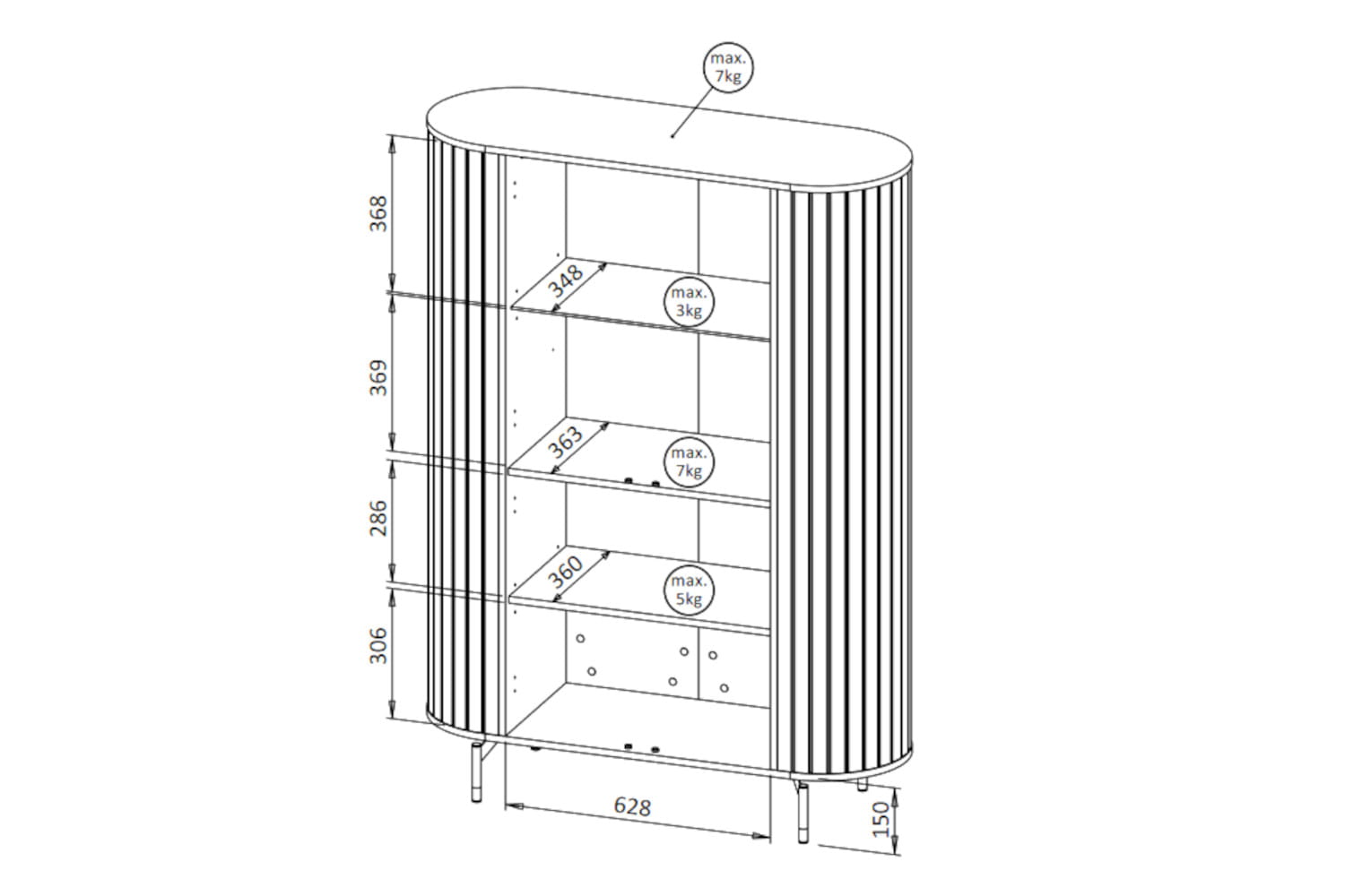 Kaszmirowa przeszklona witryna LED z zaokrąglonymi bokami ZANTE-ZA1