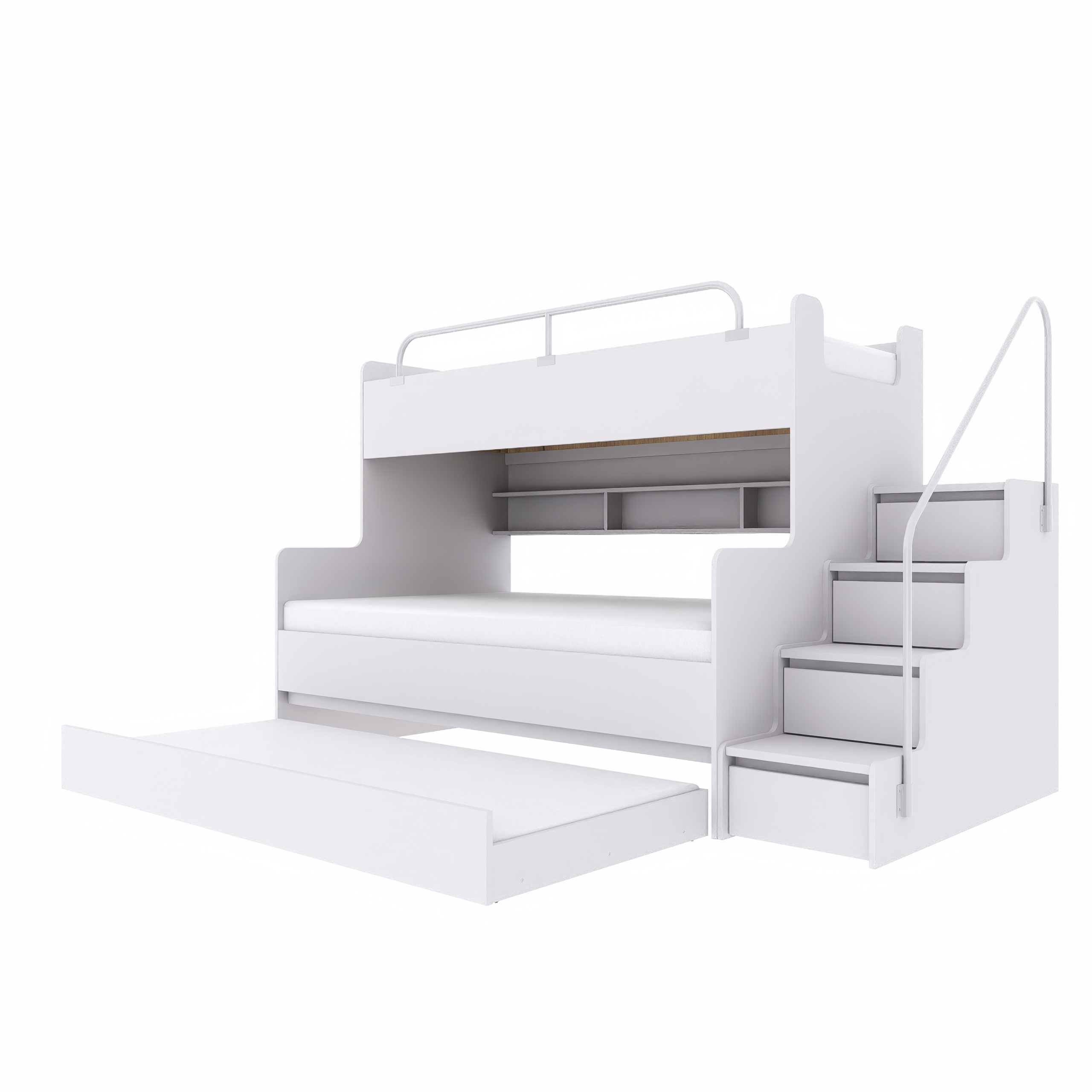 Łożko piętrowe KIKI 3 MAX z dodatkowym spaniem 3/4 osobowe - biały mat