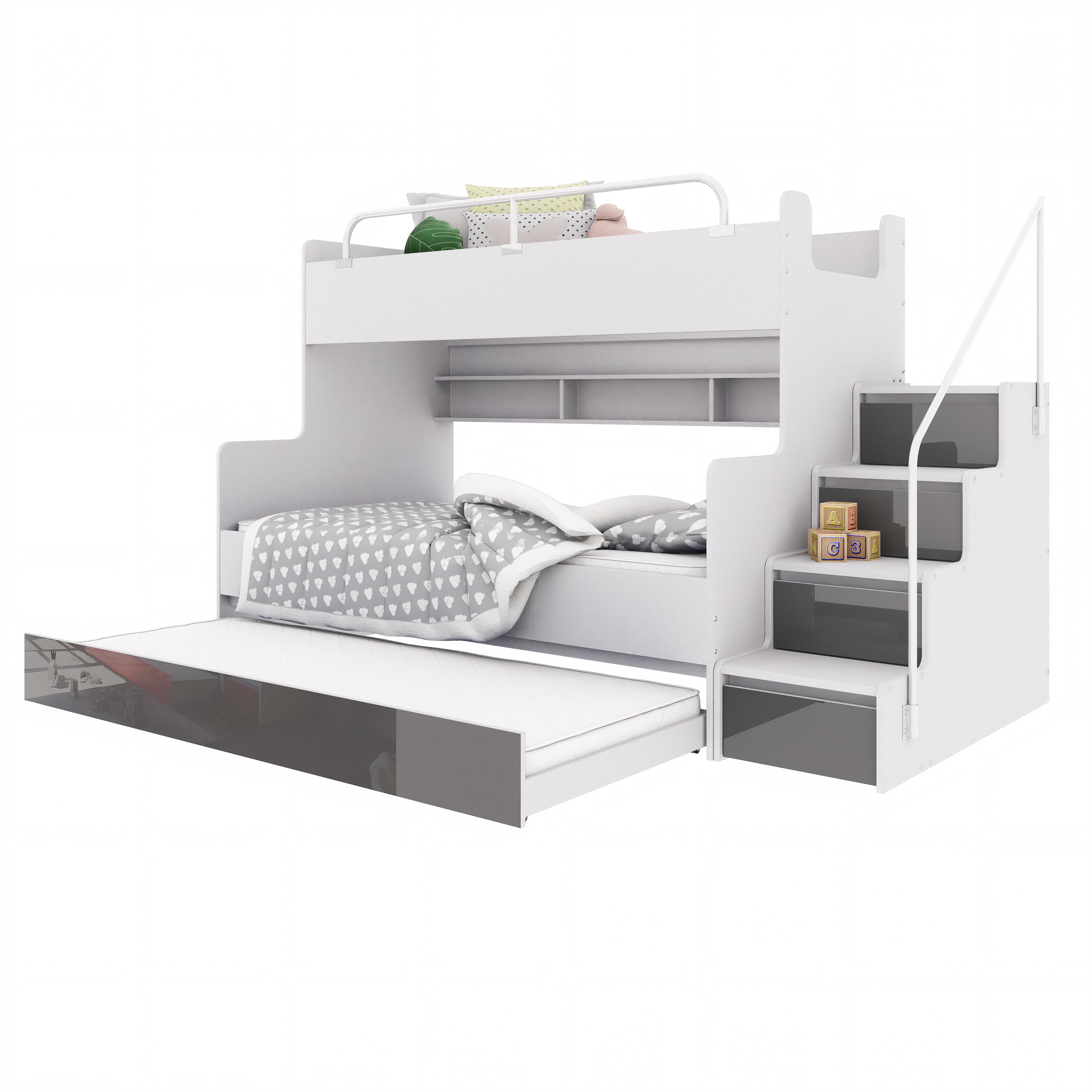Łóżko piętrowe KIKI 3 MAX z dodatkowym spaniem 3/4 osobowe - szary połysk