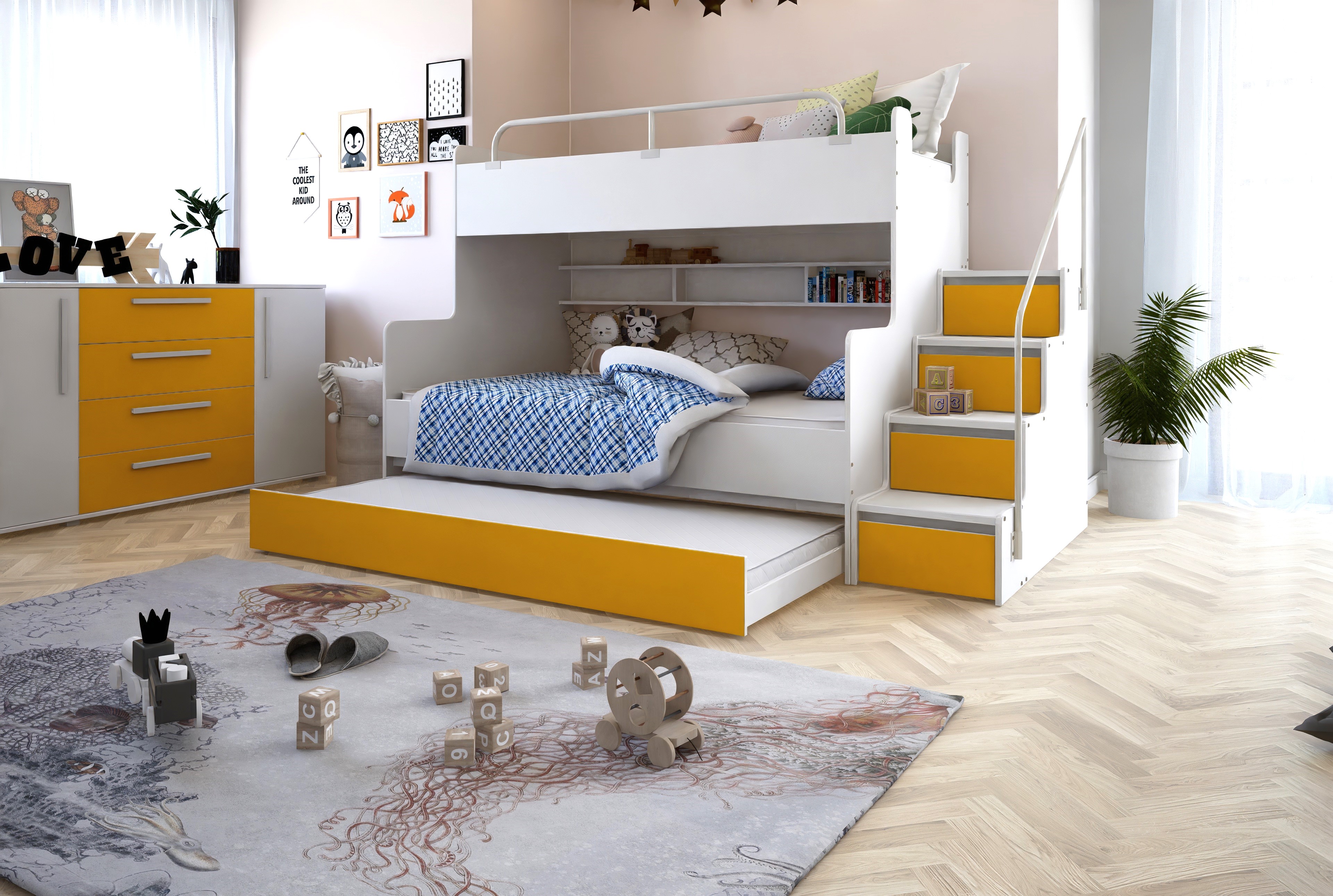 Łóżko piętrowe KIKI 3 MAX z dodatkowym spaniem 3/4 osobowe - żółty mat