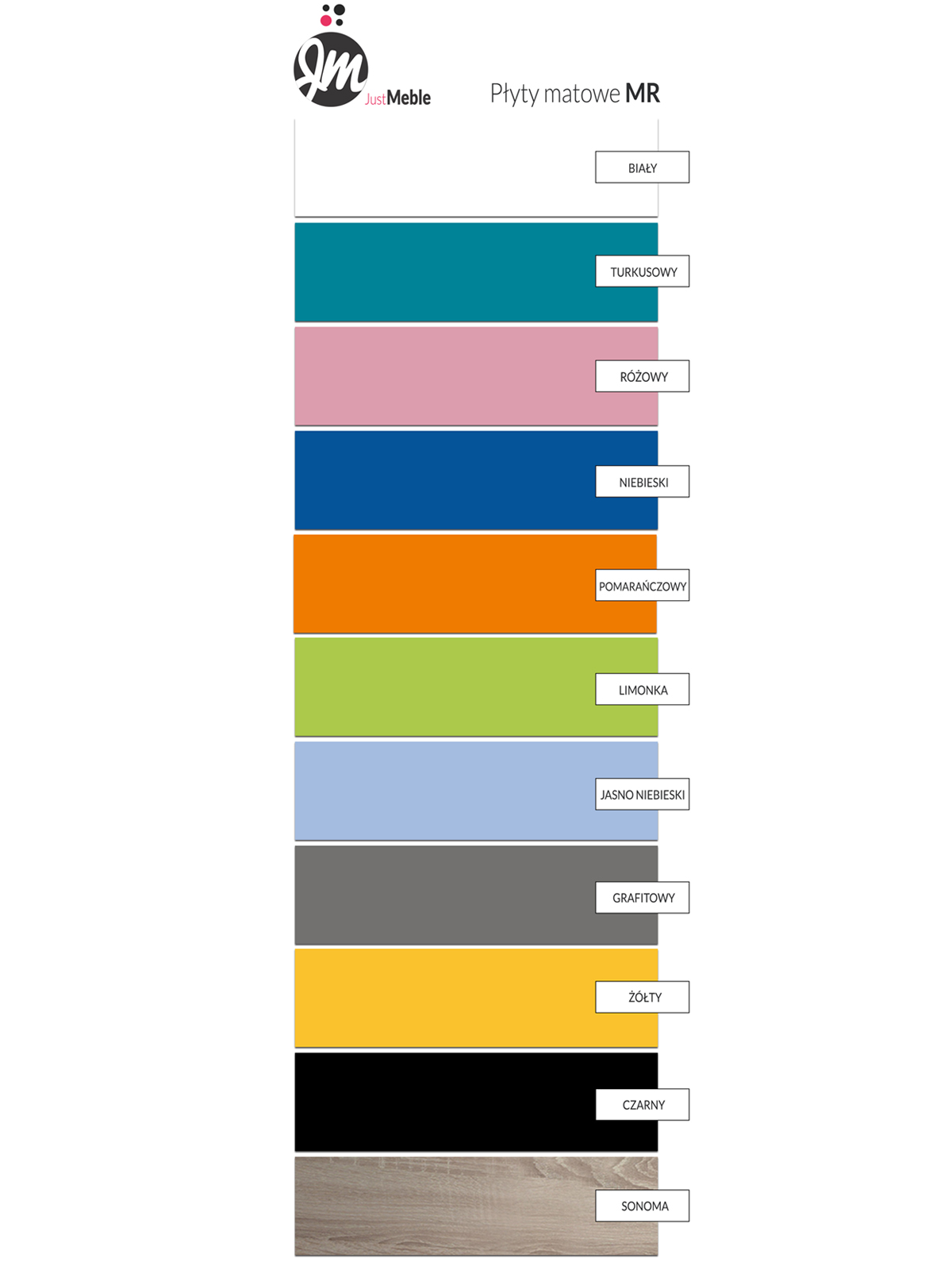 - Korpus łóżka jest wykonany z odpornej na zarysowania płyty laminowanej w kolorze białym o grubości 16 mm, natomiast przednie elementy mają grubość 22 mm,