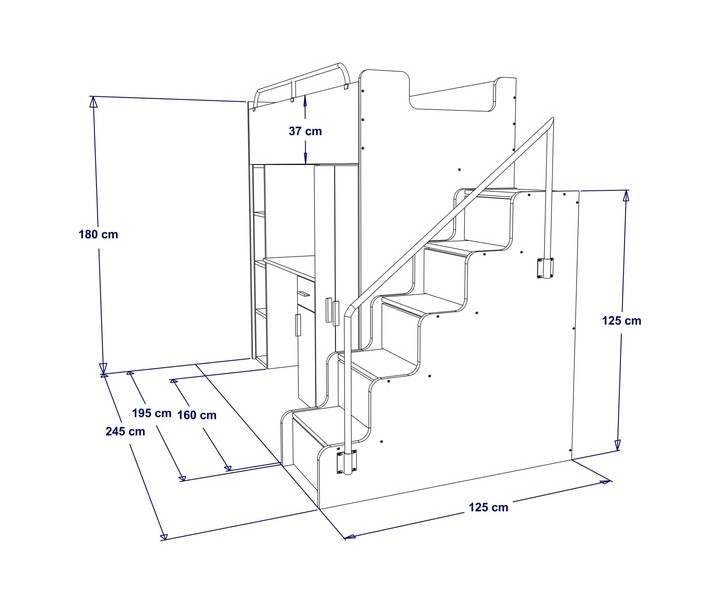 - Dzięki zastosowanej konstrukcji górnego spania o dużej głębokości uzyskano wysoki poziom bezpieczeństwa oraz możliwość dobrania wysokich i wygodnych materacy.