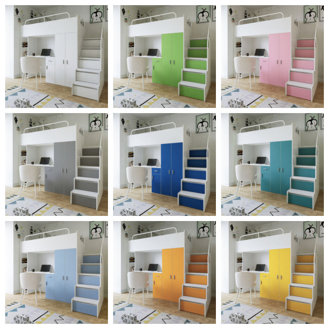 Zastosowaliśmy takie rozwiązania techniczne aby podczas montażu Klient sam decydował o układzie kompletu, tzn. sam wybierasz po której stronie zamontujesz szafę i schodki!