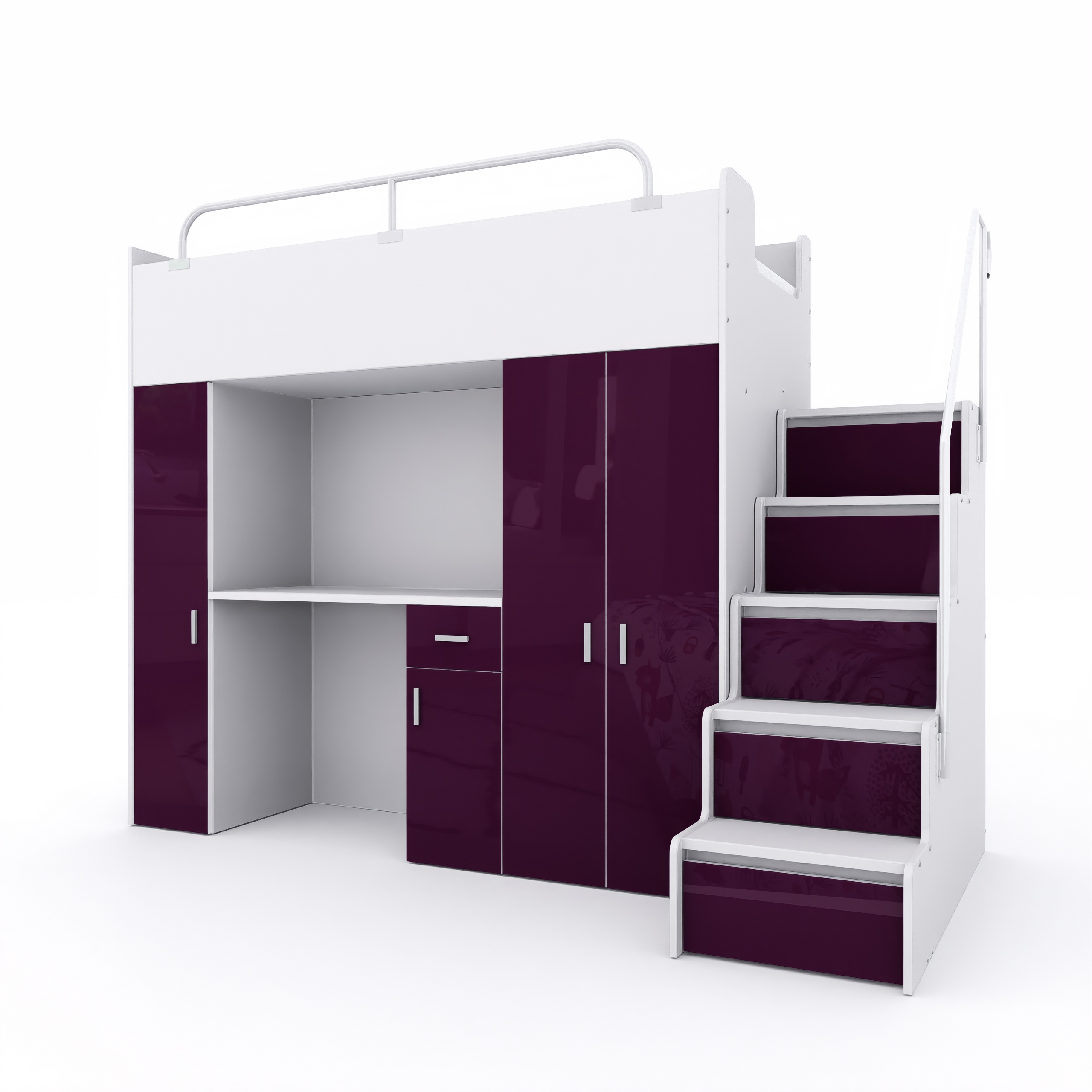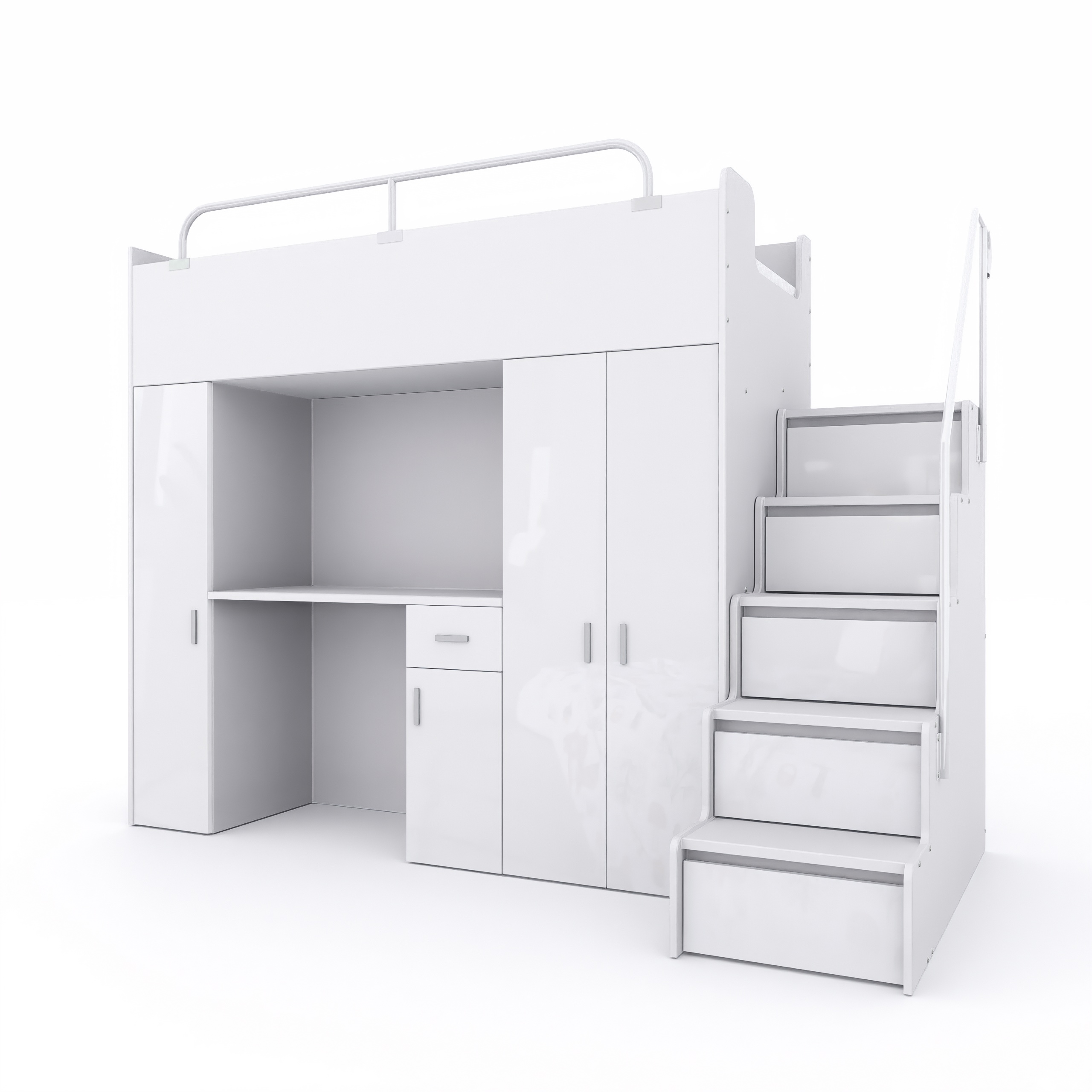 Zastosowaliśmy takie rozwiązania techniczne aby podczas montażu Klient sam decydował o układzie kompletu, tzn. sam wybierasz po której stronie zamontujesz szafę i schodki!