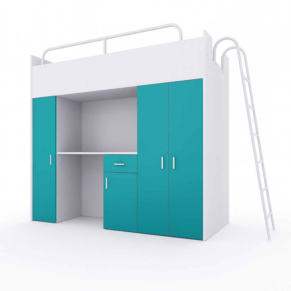 Łóżko piętrowe KIKI z biurkiem i schodkami to idealne rozwiązanie do pokoju dziecięcego lub młodzieżowego. Łączy funkcjonalność, wygodę i oszczędność miejsca w jednym nowoczesnym meblu. Na górze znajduje się wygodne, bezpieczne łóżko z solidnymi barierkami ochronnymi. Pod nim zaprojektowano przestronne biurko z półkami i schowkami – idealne do nauki, pracy lub kreatywnych zajęć. Z boku umieszczono stabilne schodki, które zapewniają wygodny i bezpieczny dostęp na górę, a jednocześnie zajmują niewiele miejsca. KIKI to przemyślana konstrukcja, która pomaga utrzymać porządek i maksymalnie wykorzystać przestrzeń w pokoju. Model KIKI5 jest bardzo podobny do wersji KIKI4 – różni się jednak tym, że w prezentowanej wersji regał posiada zamknięte fronty, podczas gdy w KIKI4 regał jest otwarty.