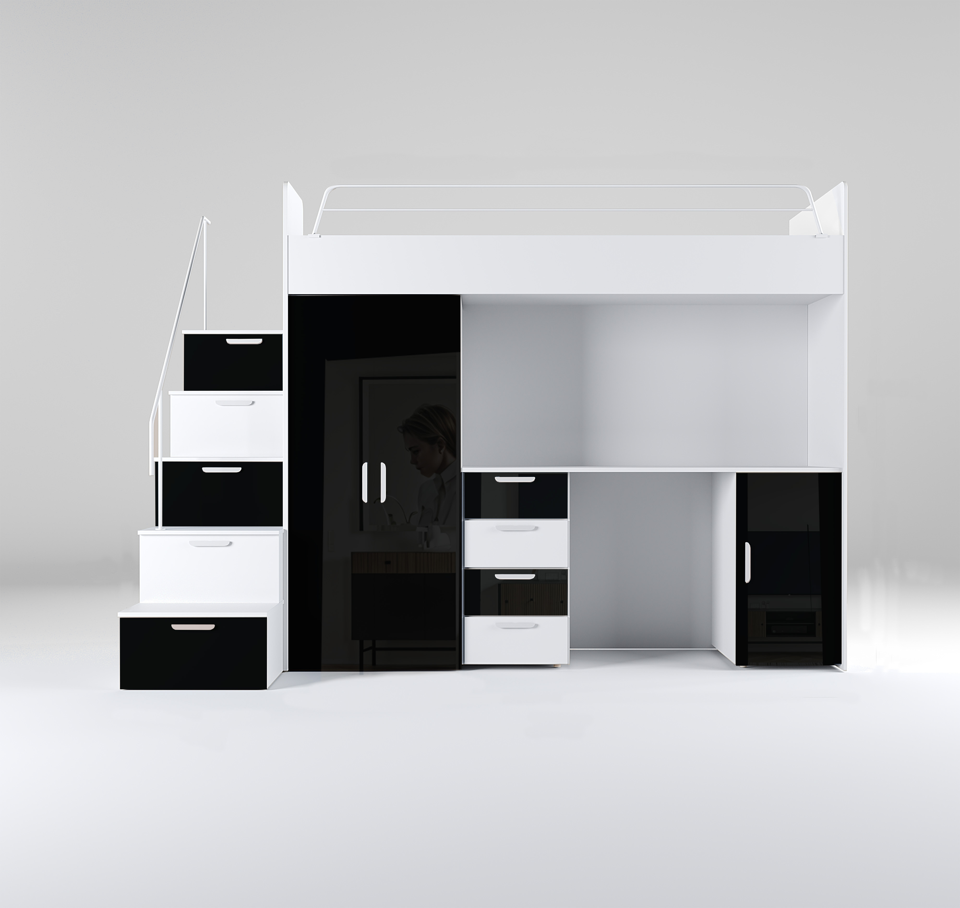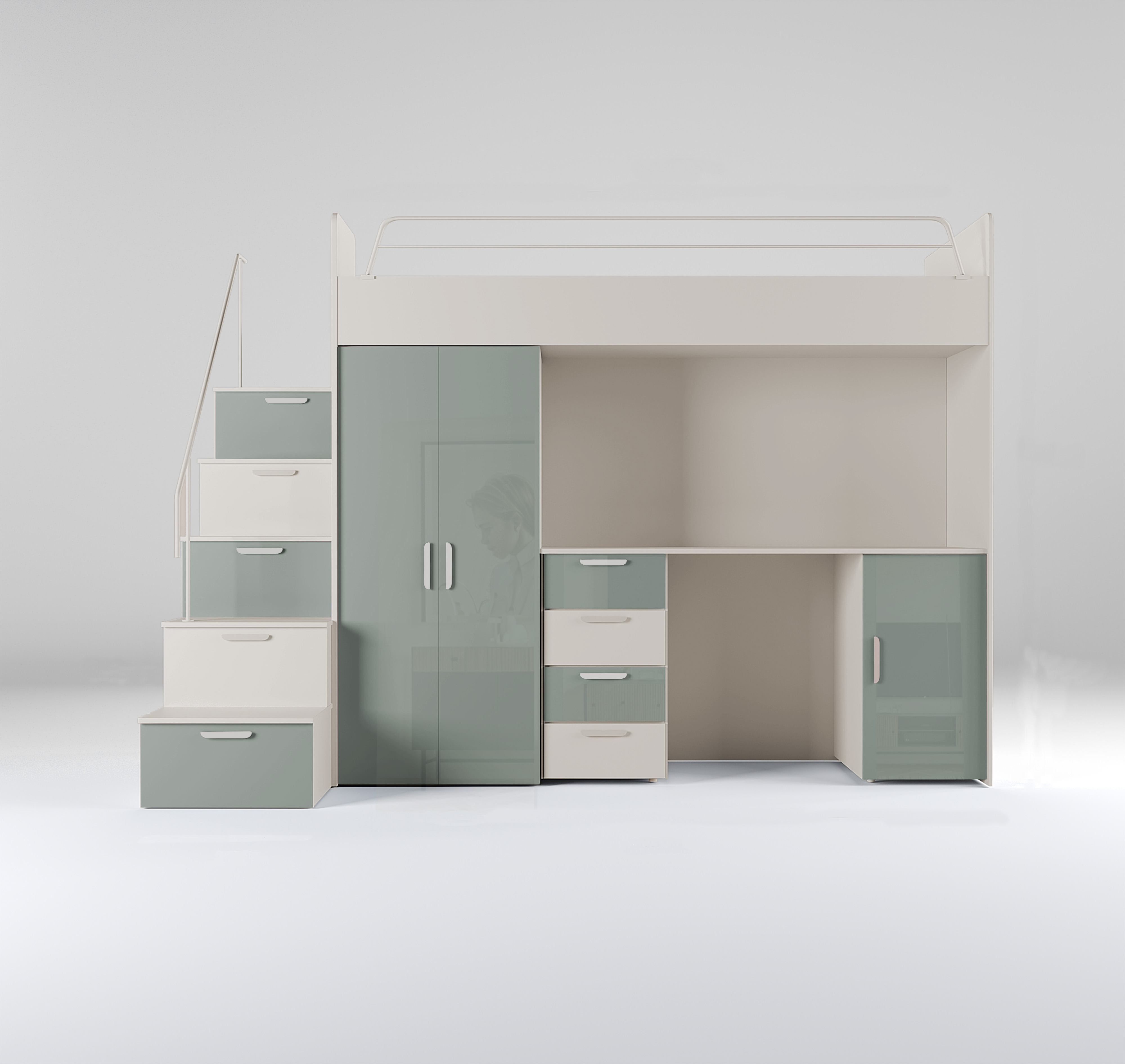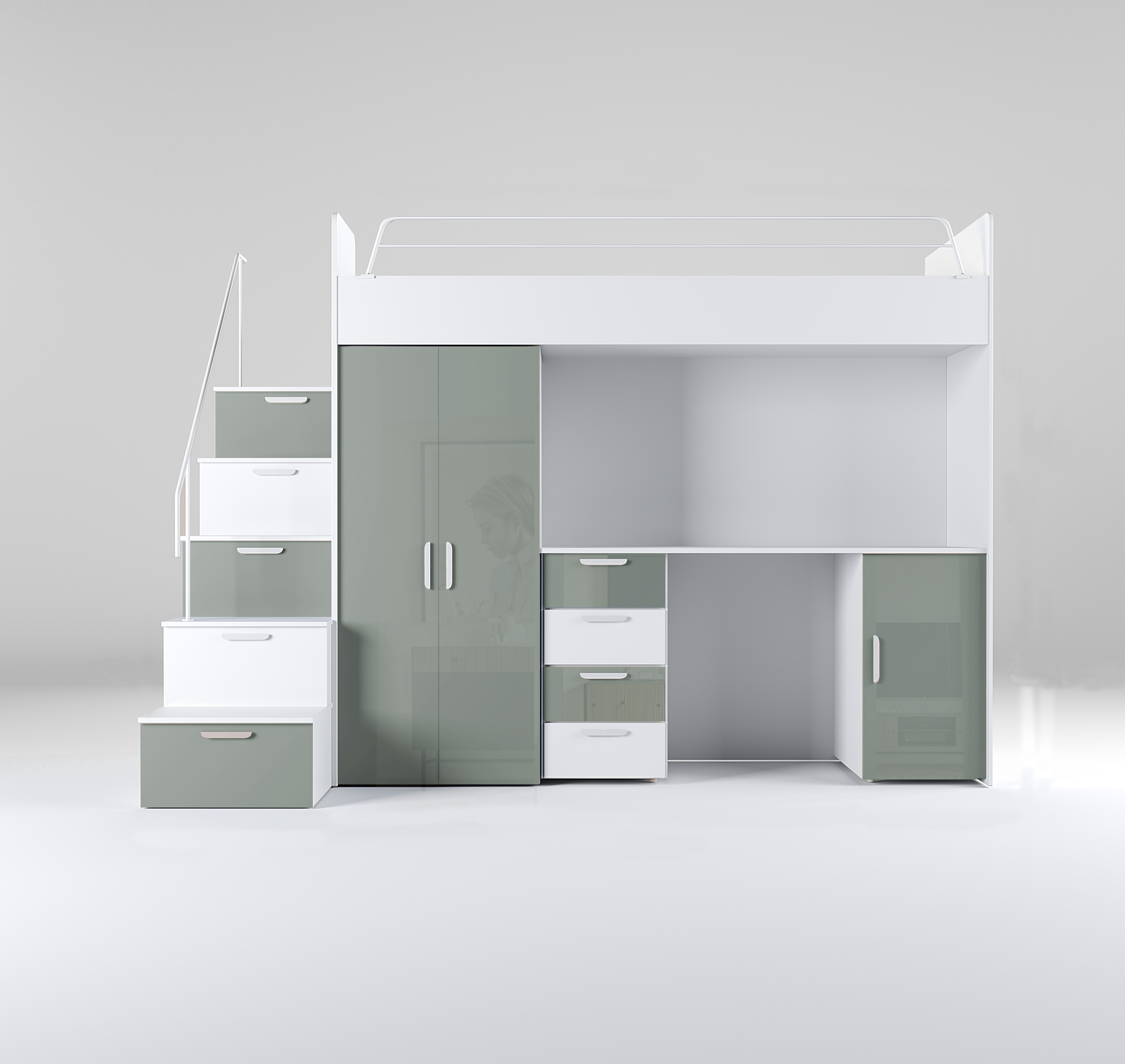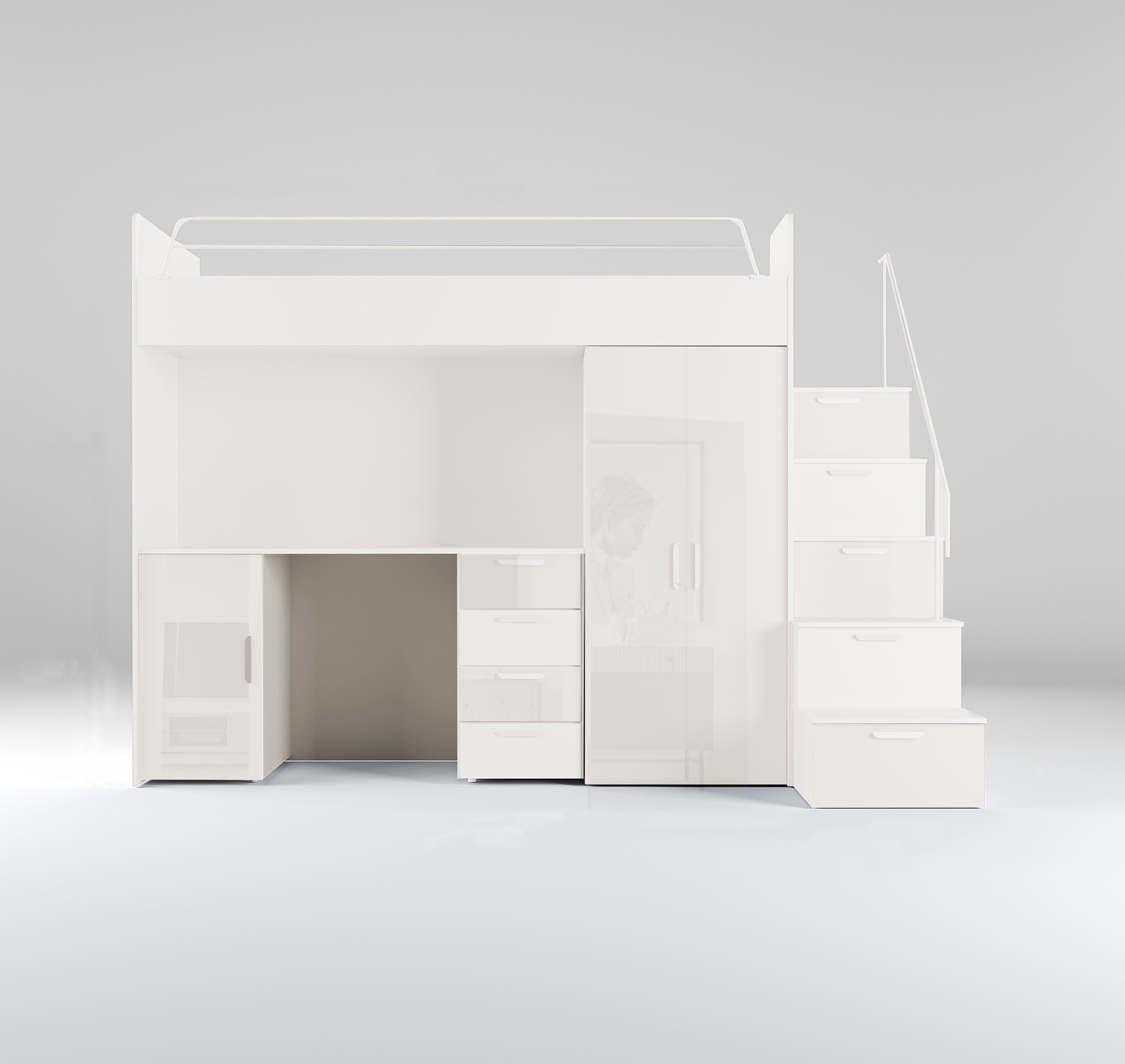 Pod łóżkiem (nad biurkiem), nie jest stosowana maskownica widoczna na niektórych zdjęciach wizualizacyjnych. Zamiast niej widoczny jest stelaż wraz z listwami podtrzymującymi go. Takie rozwiązanie zostało zastosowane celowo, aby zapewnić lepszą cyrkulację powietrza, co wpływa korzystnie na higienę i trwałość materaca.