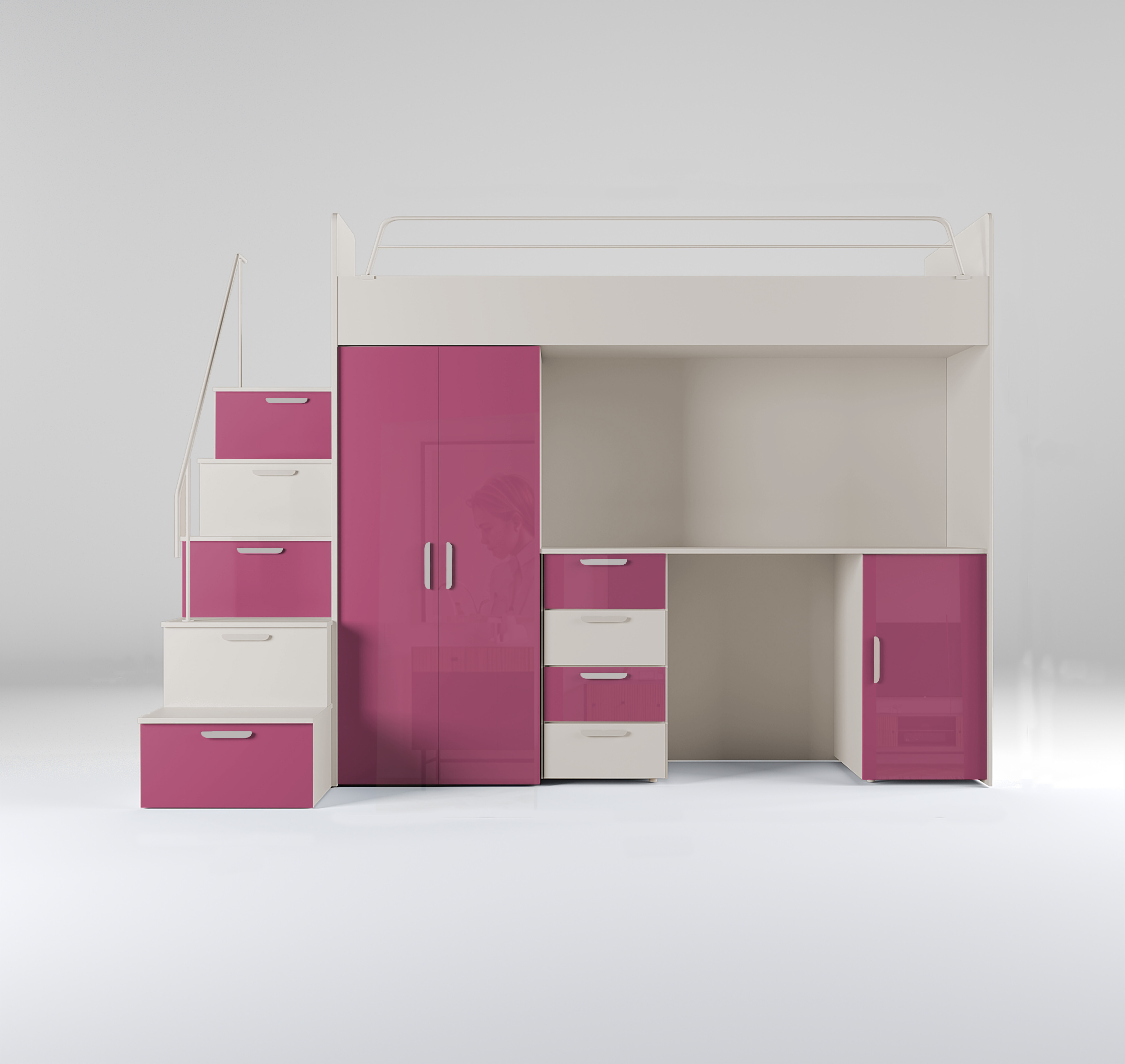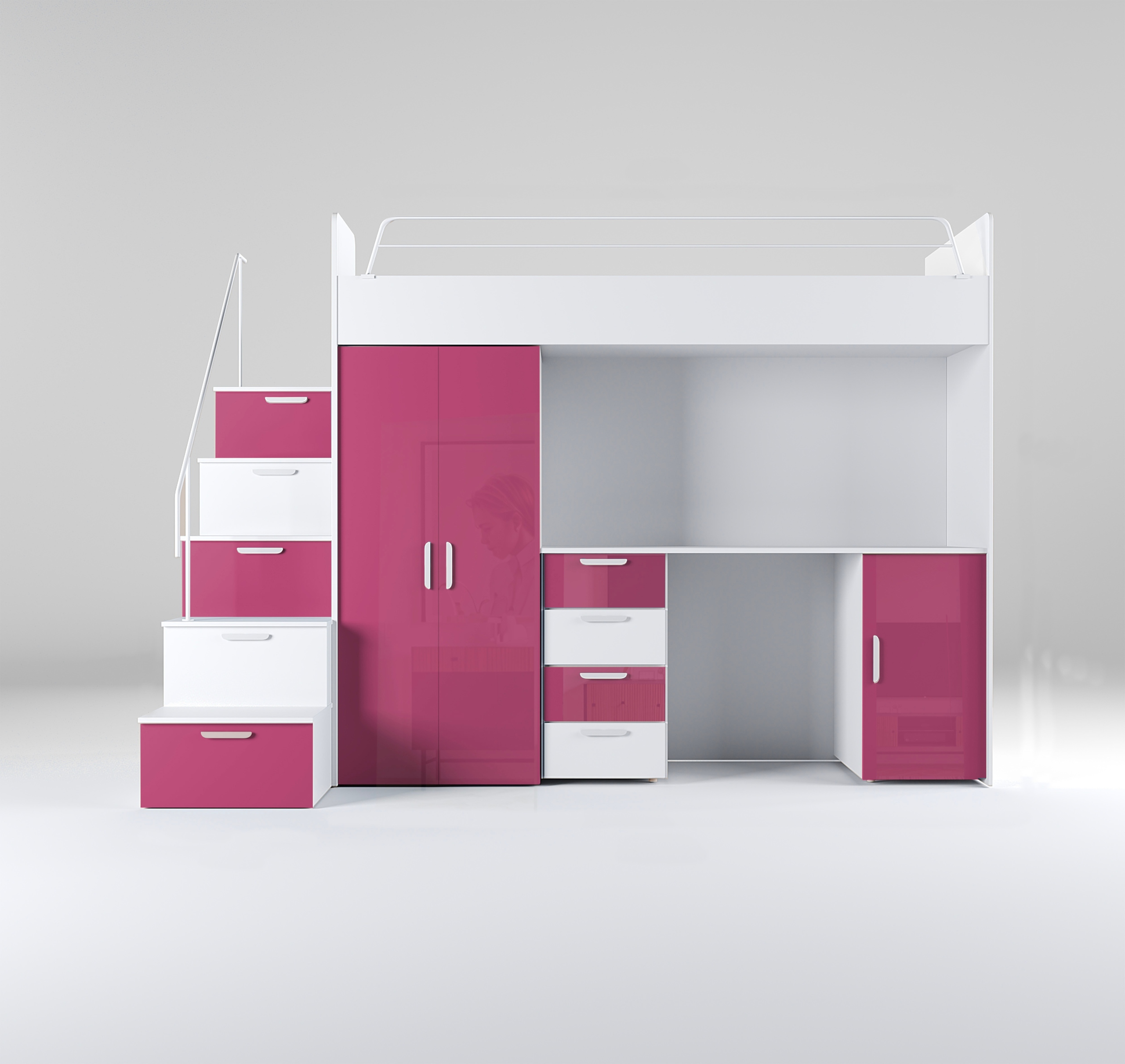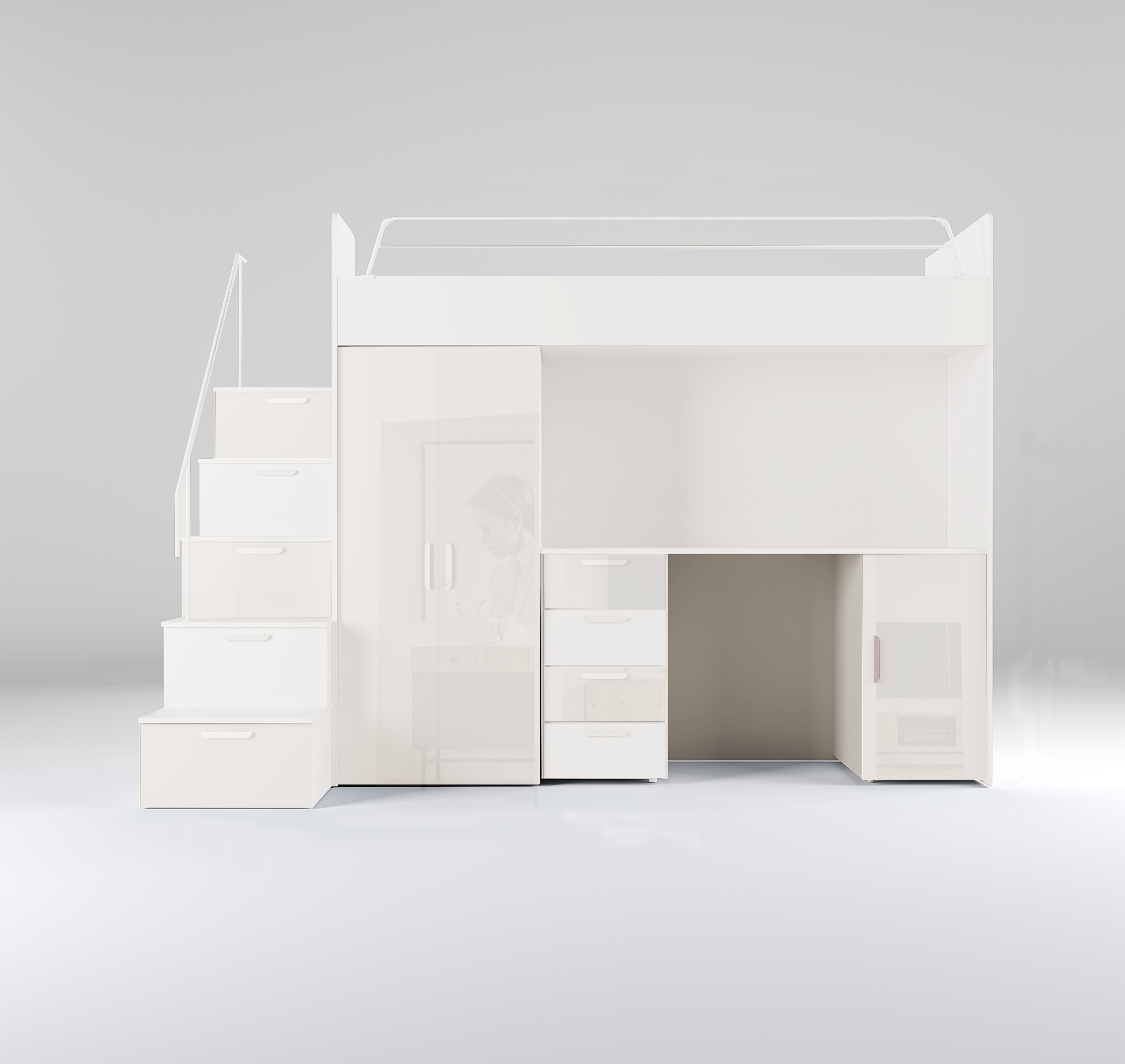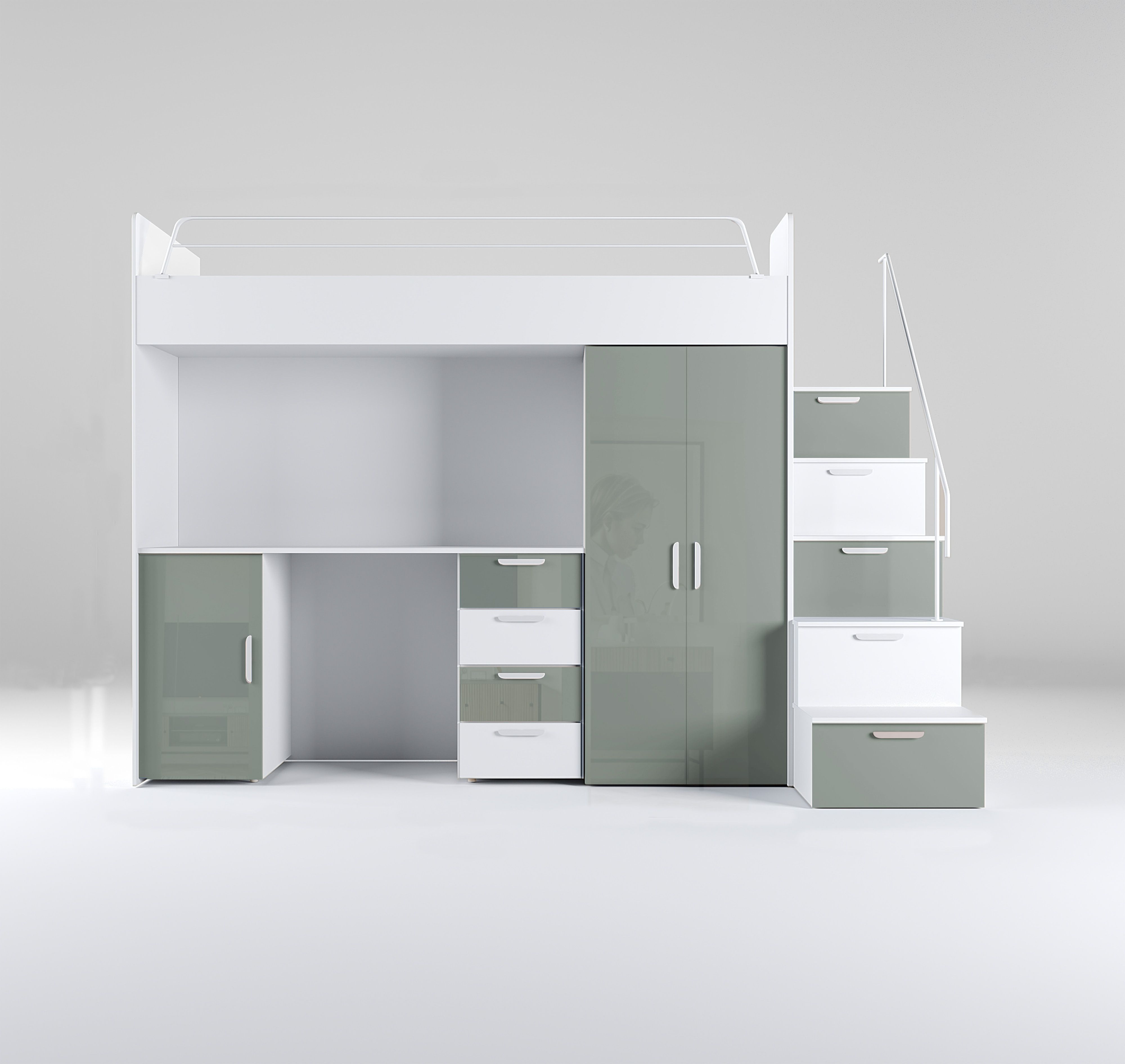 Pod łóżkiem (nad biurkiem), nie jest stosowana maskownica widoczna na niektórych zdjęciach wizualizacyjnych. Zamiast niej widoczny jest stelaż wraz z listwami podtrzymującymi go. Takie rozwiązanie zostało zastosowane celowo, aby zapewnić lepszą cyrkulację powietrza, co wpływa korzystnie na higienę i trwałość materaca.