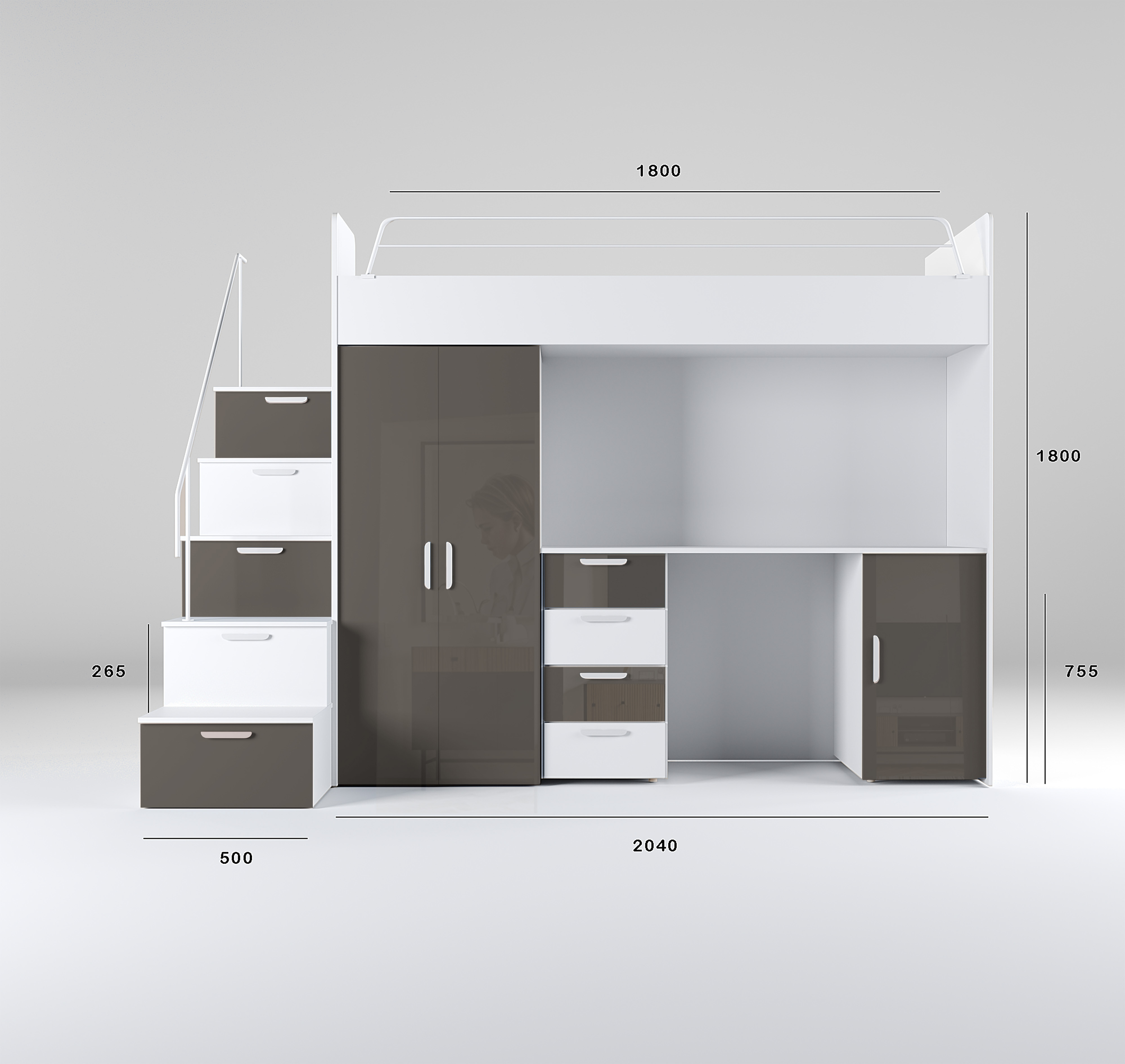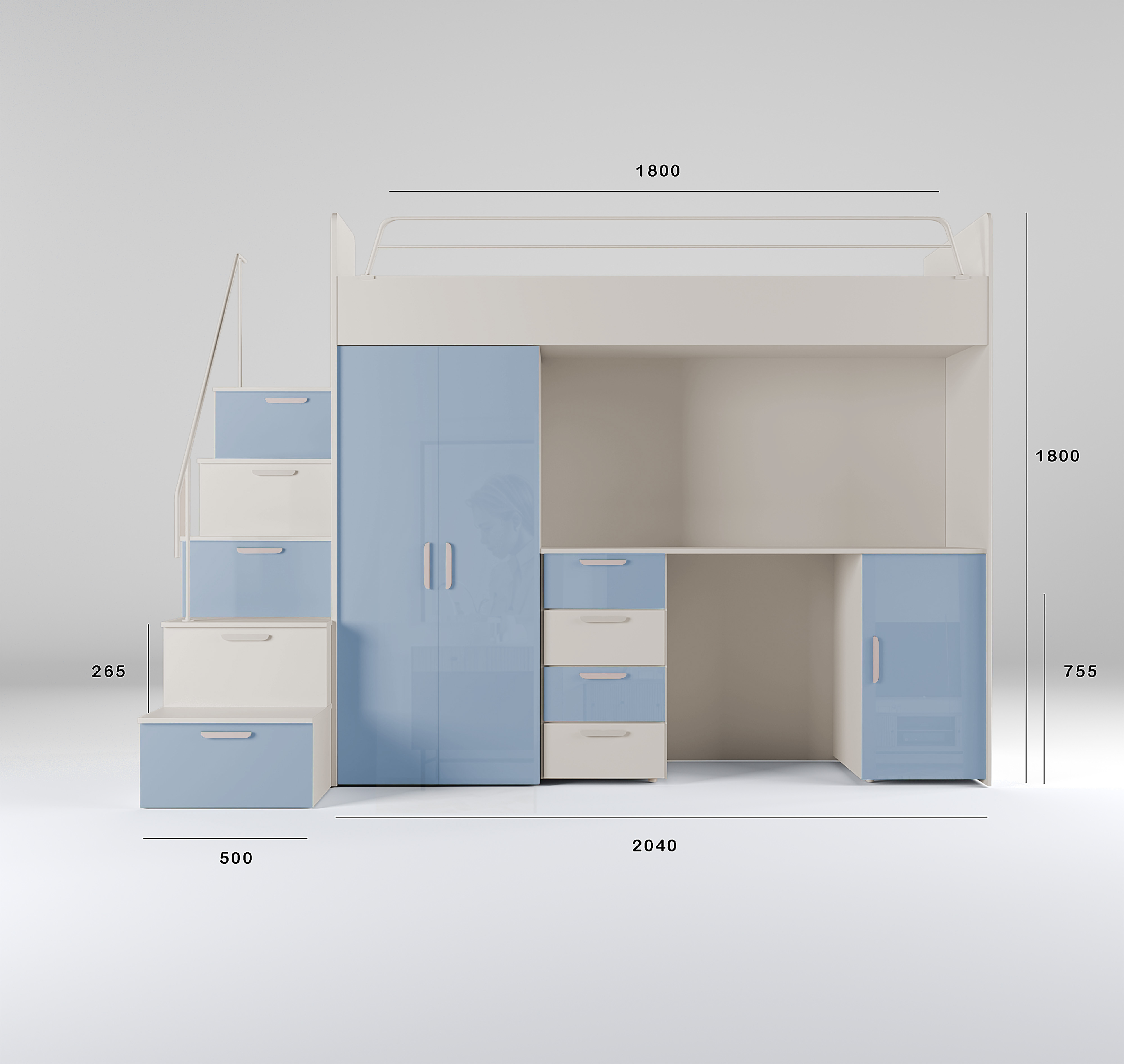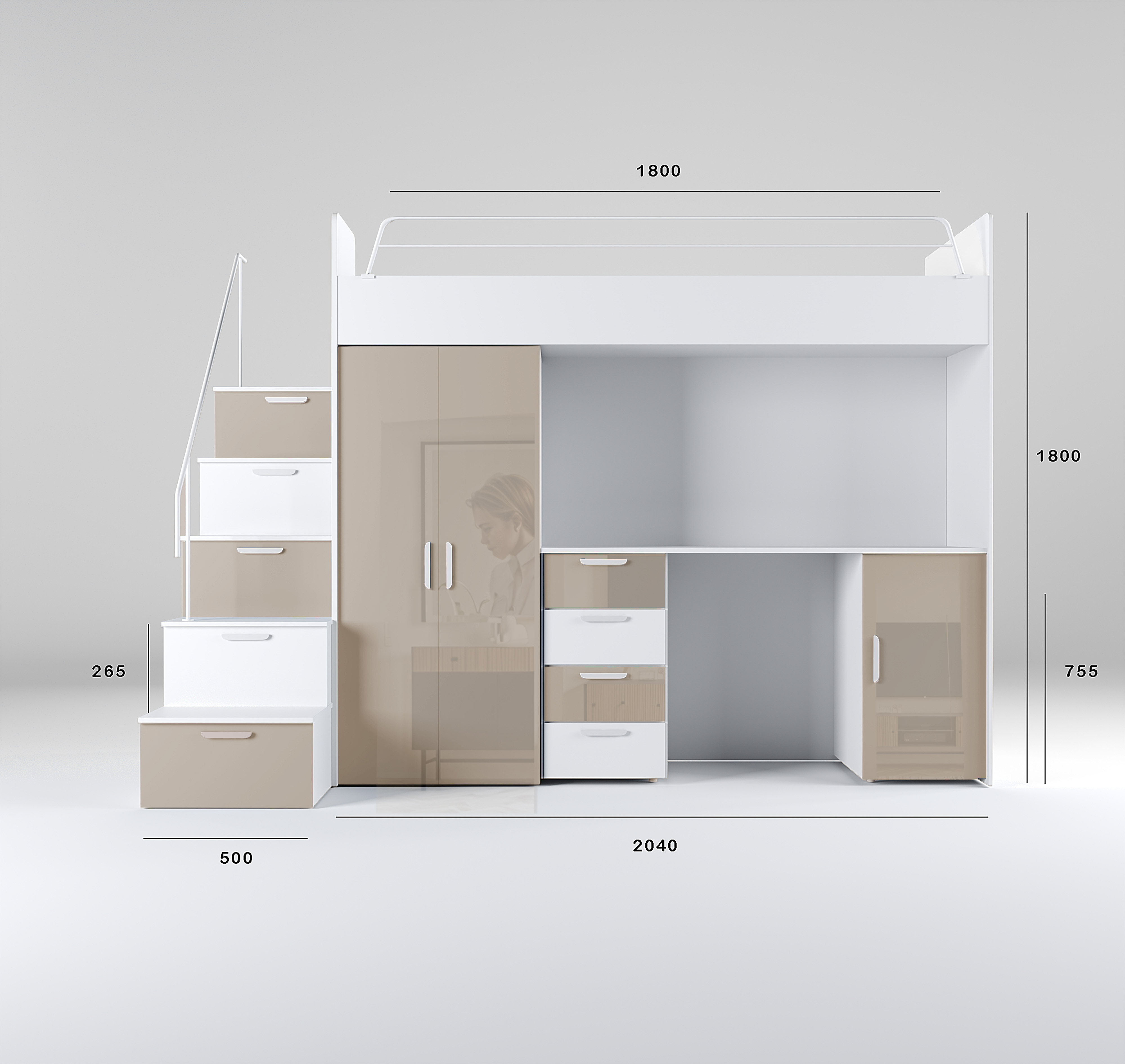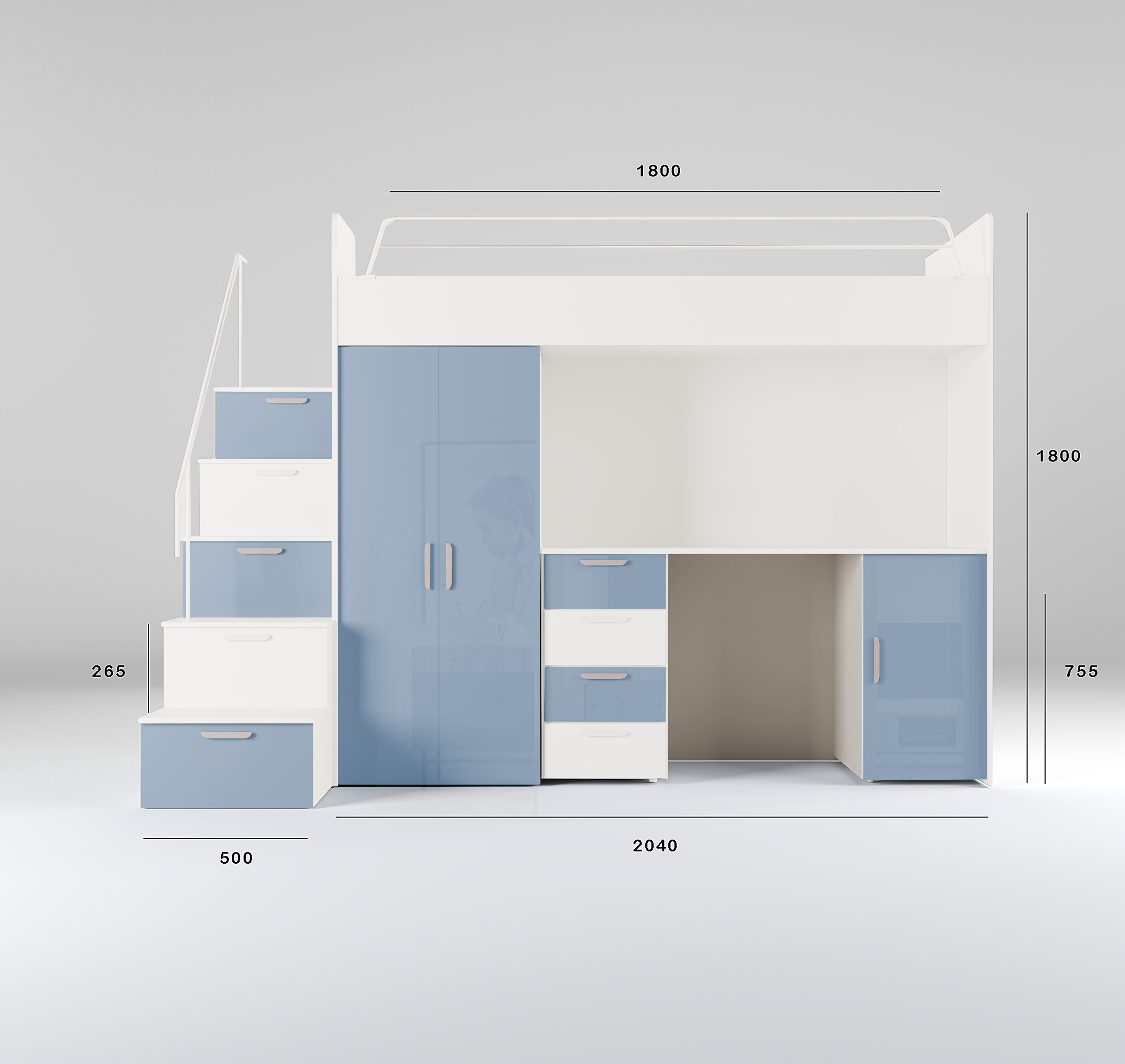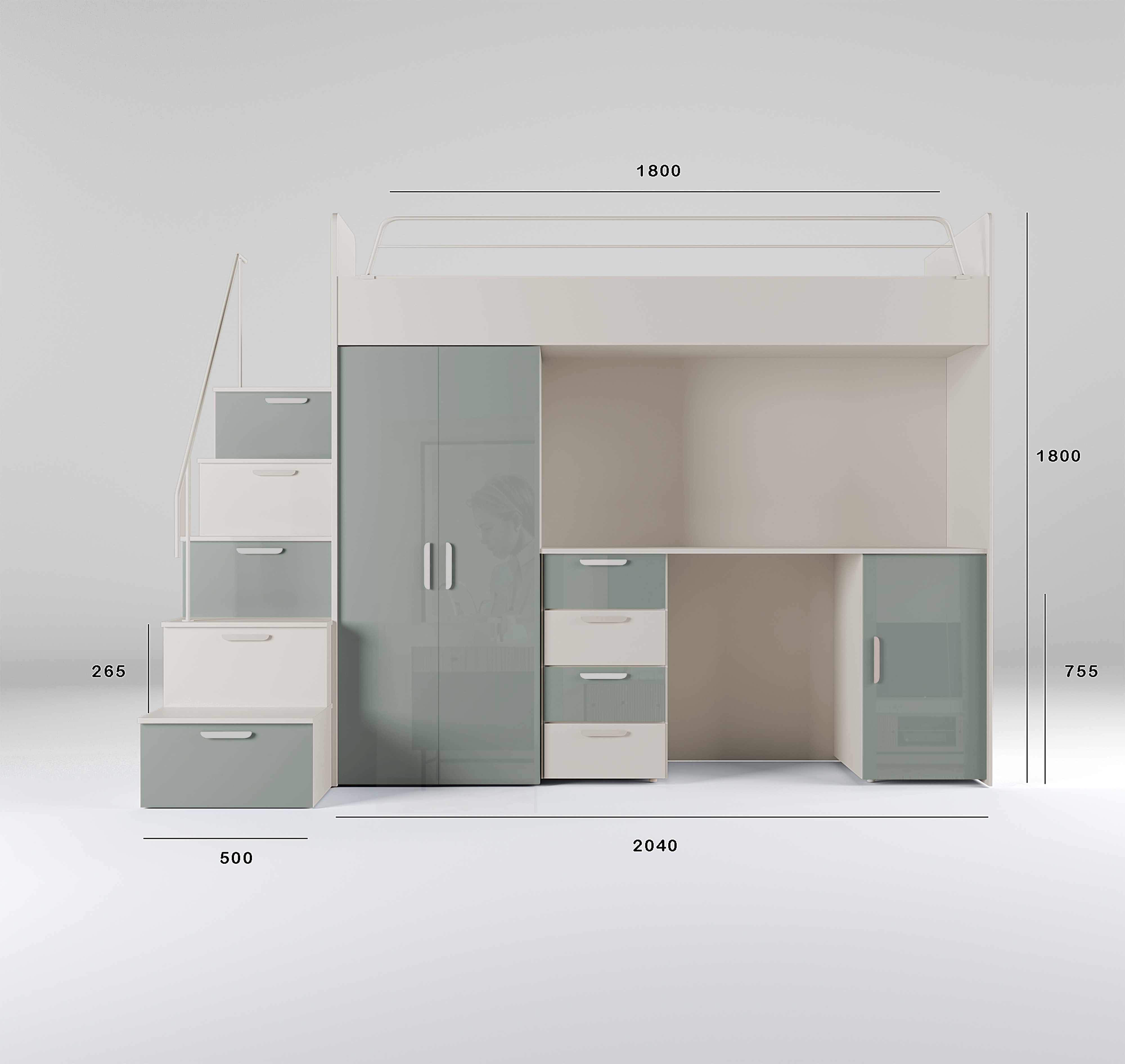 Pod łóżkiem (nad biurkiem), nie jest stosowana maskownica widoczna na niektórych zdjęciach wizualizacyjnych. Zamiast niej widoczny jest stelaż wraz z listwami podtrzymującymi go. Takie rozwiązanie zostało zastosowane celowo, aby zapewnić lepszą cyrkulację powietrza, co wpływa korzystnie na higienę i trwałość materaca.