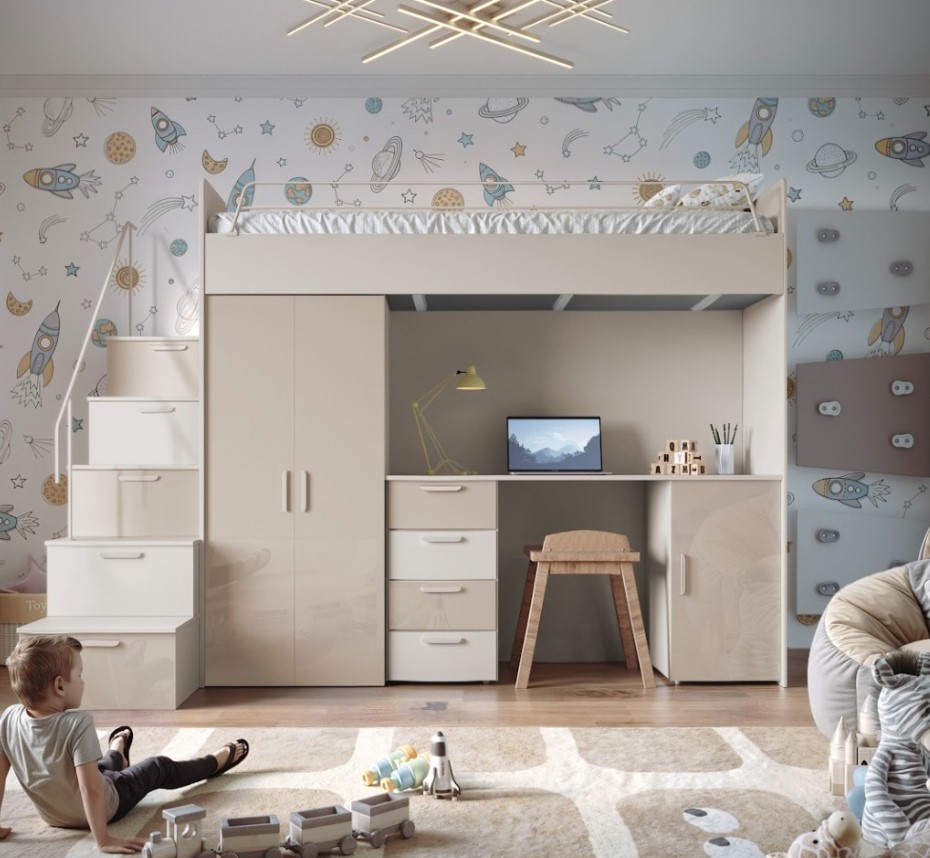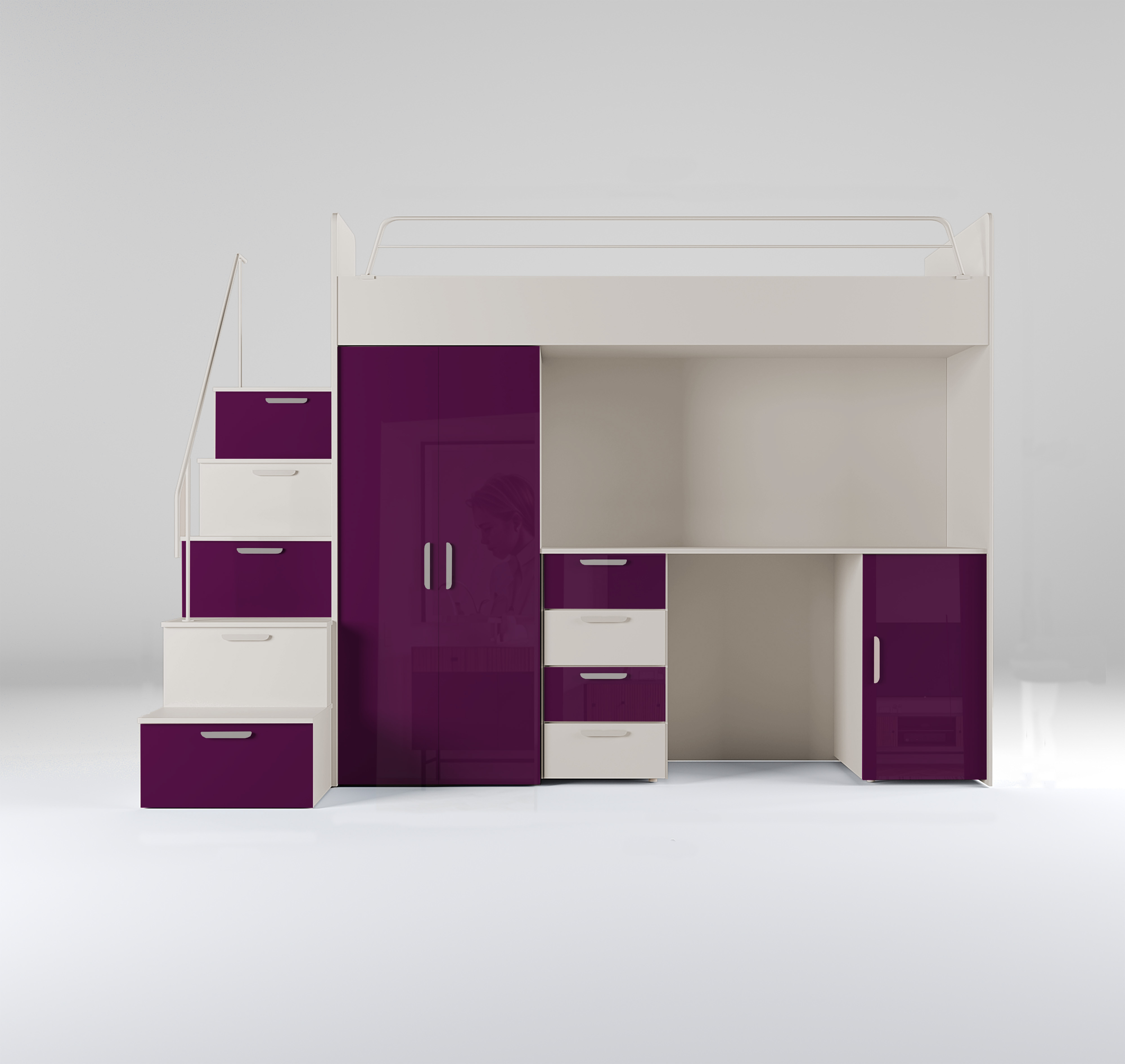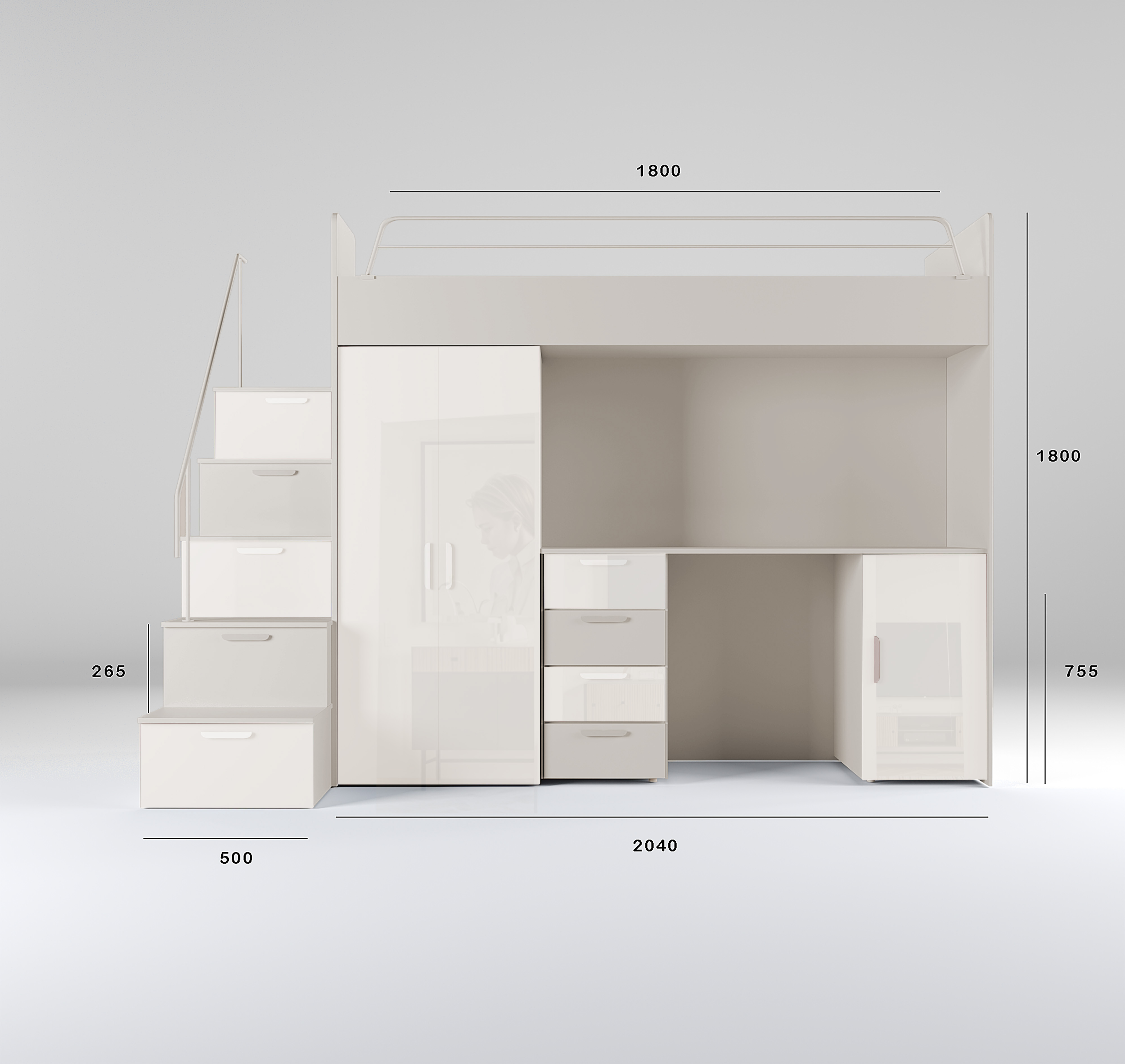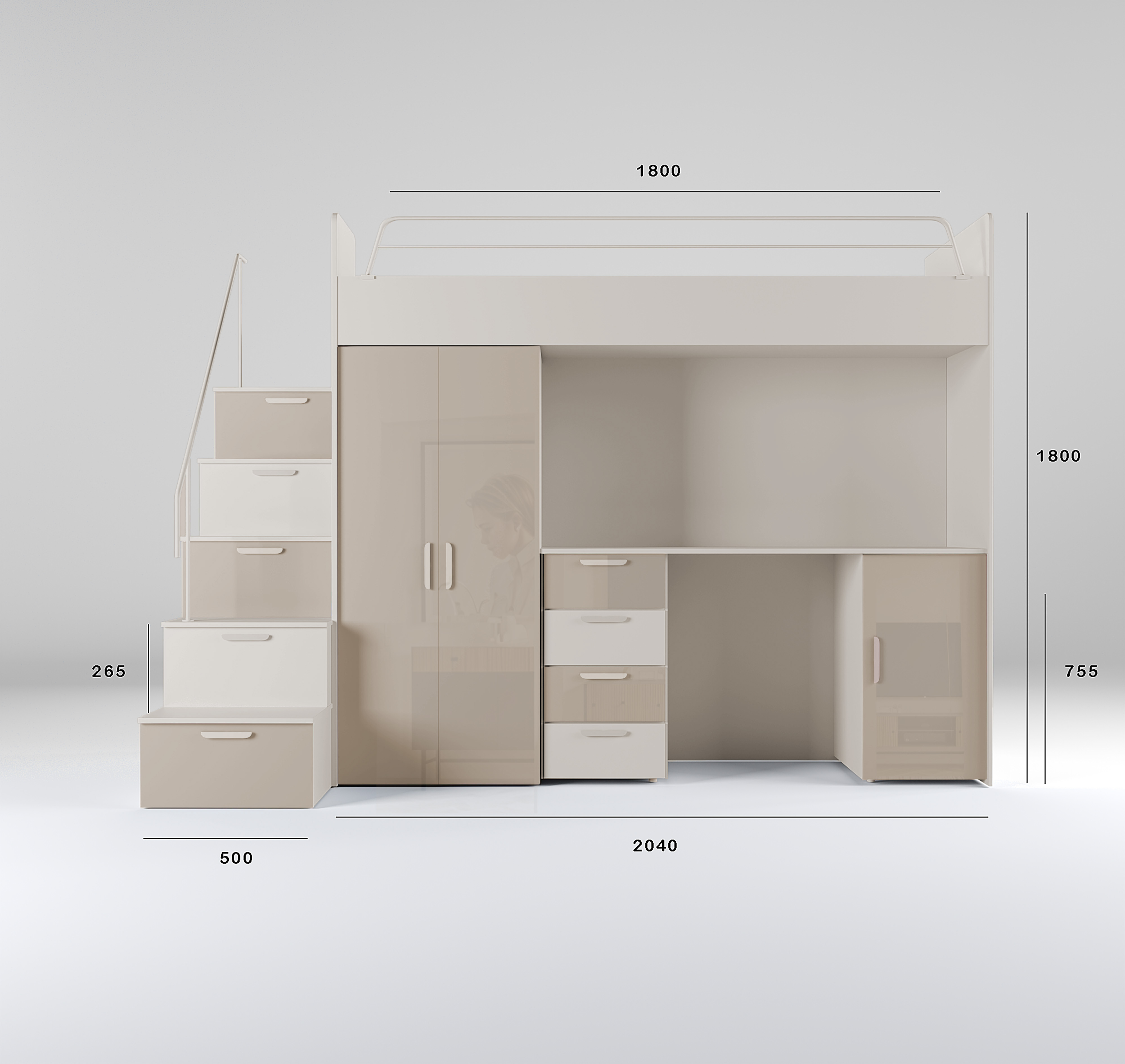 Pod łóżkiem (nad biurkiem), nie jest stosowana maskownica widoczna na niektórych zdjęciach wizualizacyjnych. Zamiast niej widoczny jest stelaż wraz z listwami podtrzymującymi go. Takie rozwiązanie zostało zastosowane celowo, aby zapewnić lepszą cyrkulację powietrza, co wpływa korzystnie na higienę i trwałość materaca.