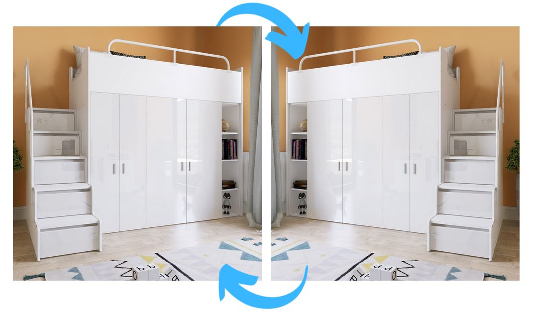 O tym, po której stronie będzie drabinka oraz regał decydują Państwo podczas montażu.