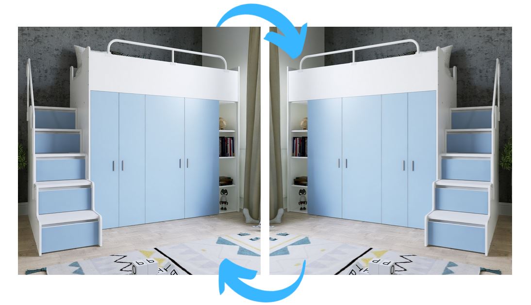 O tym, po której stronie będzie drabinka oraz regał decydują Państwo podczas montażu.