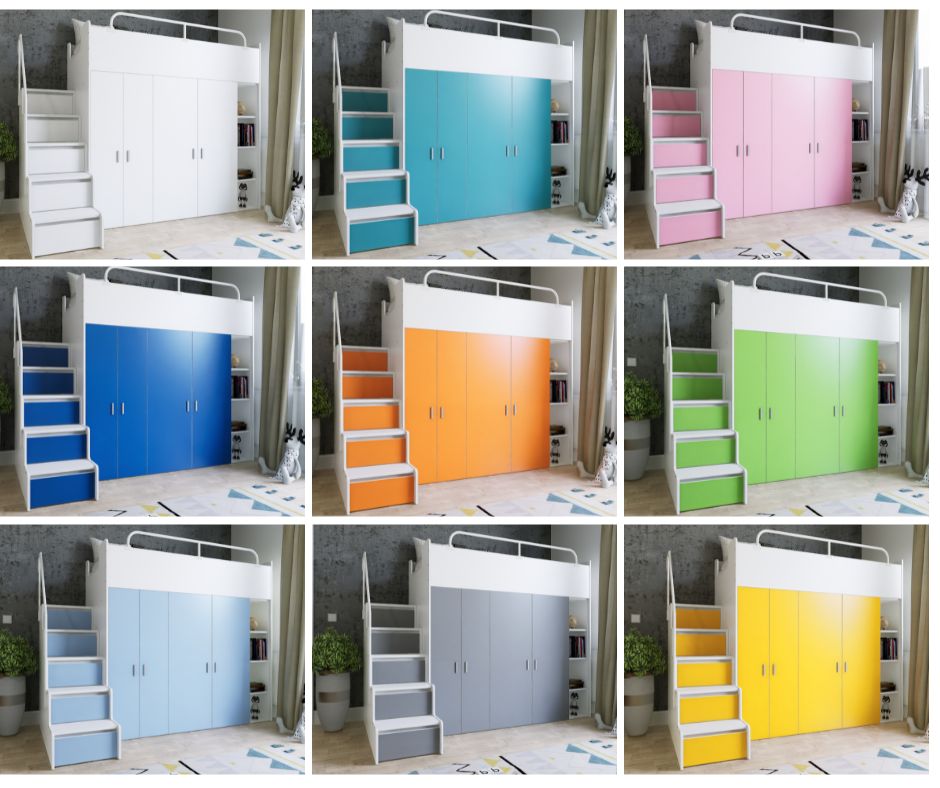 Fronty łóżka wykonane są z płyty meblowej w bogatej kolorystyce, która pozwoli dopasować mebel do każdego pokoju.