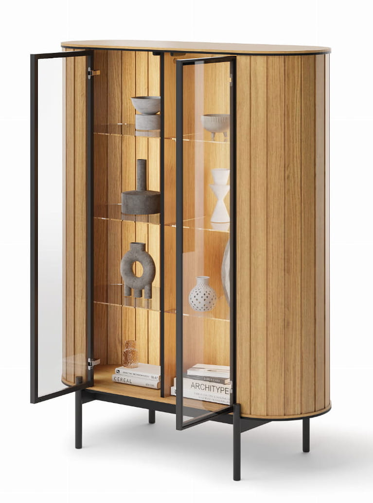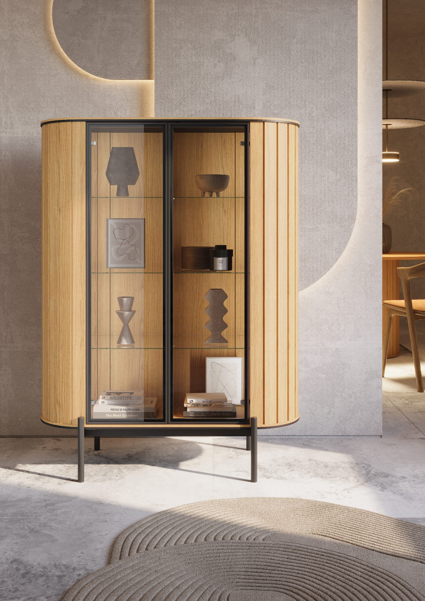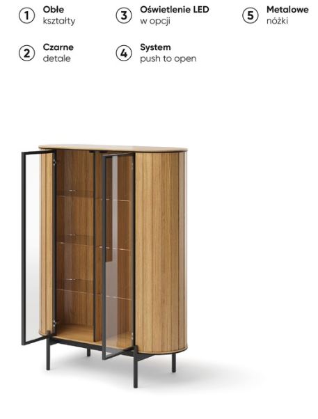 Zaokrąglona witryna ROTTO RT-10 to nowoczesny mebel, który łączy elegancki wygląd z praktycznym zastosowaniem. Jej unikalne, miękko zaokrąglone krawędzie wprowadzają do wnętrza lekkość i harmonię, jednocześnie przyciągając wzrok swoim oryginalnym designem. Smukła, pionowa forma sprawia, że witryna nie przytłacza przestrzeni, a jej dopracowane detale dodają całości wyrafinowanego stylu. ROTTO RT-10 doskonale sprawdzi się zarówno w salonie, jadalni, jak i gabinecie – oferując funkcjonalne miejsce do przechowywania i ekspozycji ulubionych przedmiotów. Dodatkowym atutem jest możliwość zamontowania oświetlenia LED, które subtelnie podkreśla wyeksponowane elementy i tworzy przyjemny nastrój w pomieszczeniu, szczególnie wieczorami. To idealne połączenie nowoczesnej estetyki, codziennej wygody i nastrojowego klimatu.