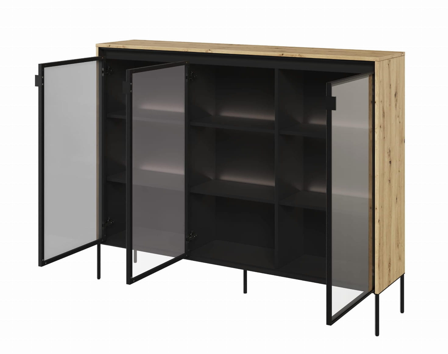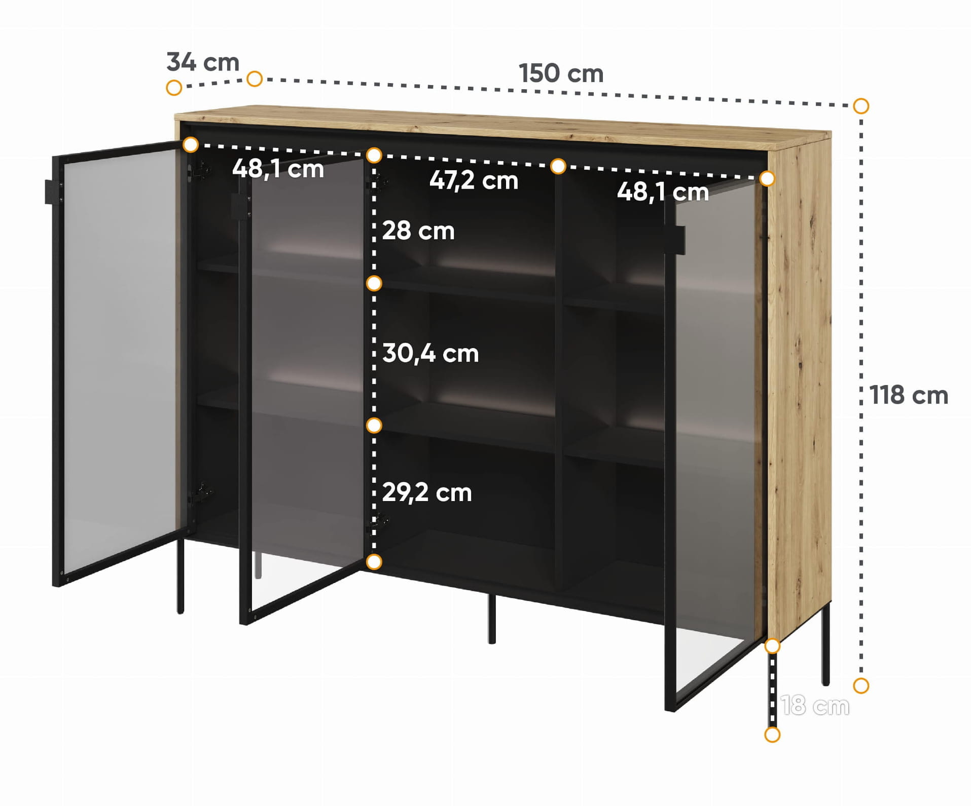 Przeszklona komoda 150 cm na nóżkach dąb artisan - LED TREND TR - 08
