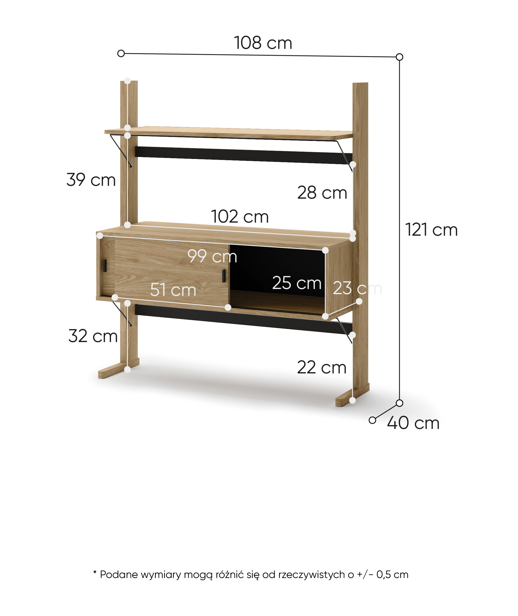 Regał z szafką i półką niski 108 cm OLLIE OL-03