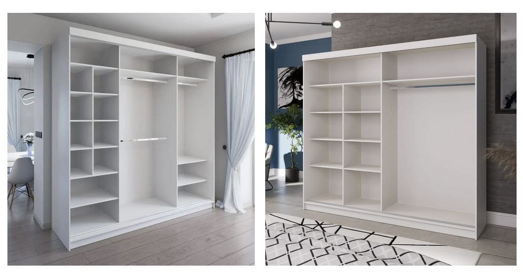 Prosimy pamiętać, że przedstawione schematy mają wyłącznie charakter orientacyjny – ostateczne dopasowanie układu wnętrza zależy od wymiarów i specyfiki zamówionego systemu garderobianego na wymiar.