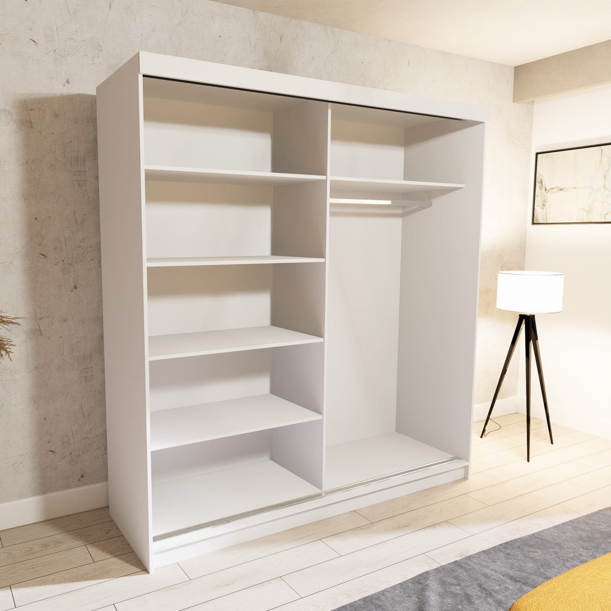 Korpus standardowo wykonany z wysokiej jakości płyty laminowanej w białym, matowym wykończeniu (płyty o grubości około 16 mm i 22 mm, symbol U511 PE, producent: Kronospan). Zewnętrzne boczne ściany oraz spód otwartej szafy na zamówienie mają 22 mm grubości, natomiast górna płyta pozioma (tzw. sufit systemu garderobianego na wymiar) oraz wszystkie przegrody i półki wykonane są z płyty o grubości około 16 mm.