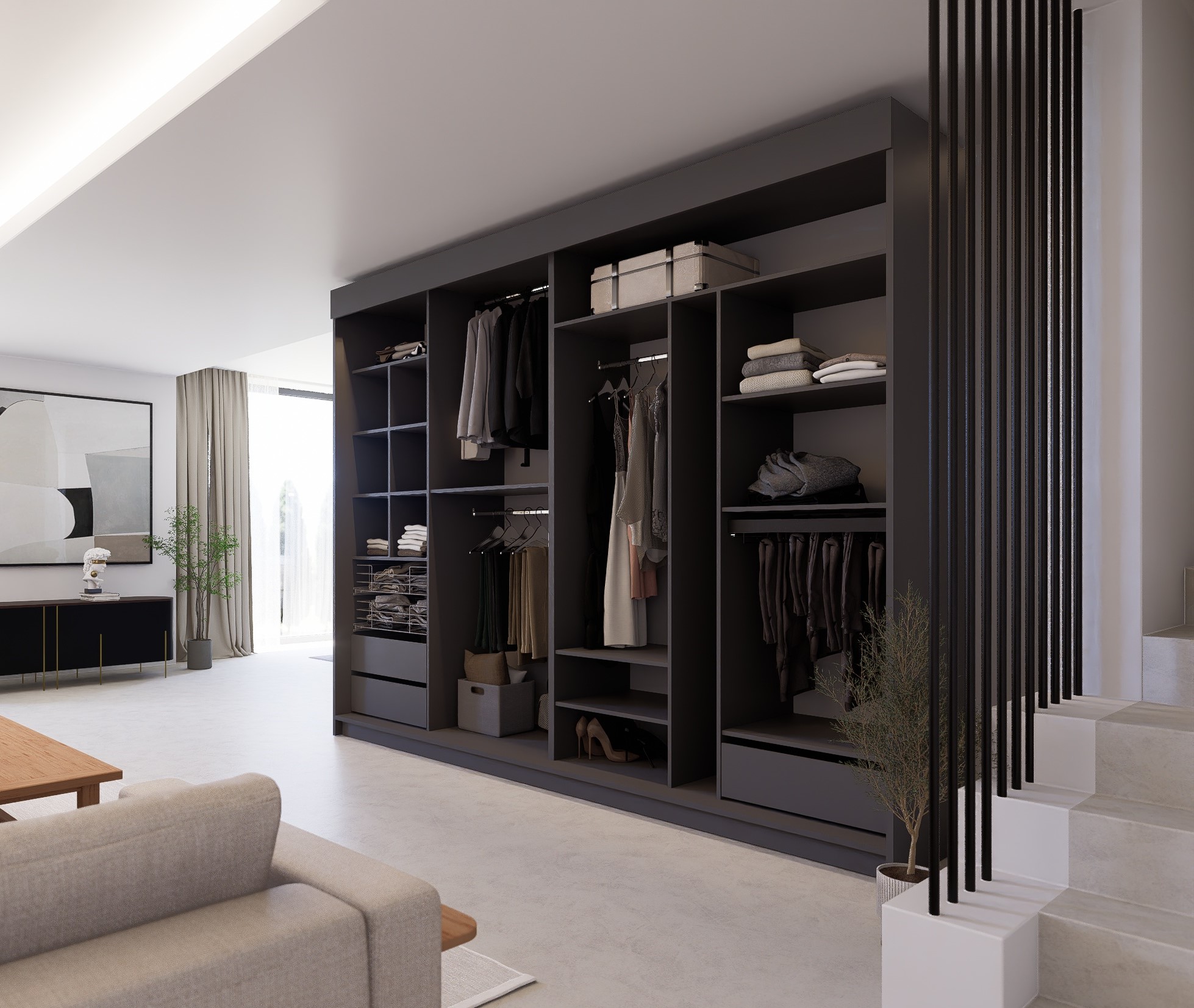 Po konsultacji z naszym zespołem istnieje możliwość zamówienia niestandardowych, indywidualnych dodatków do otwartych systemów garderobianych na wymiar, które wykraczają poza naszą standardową ofertę.