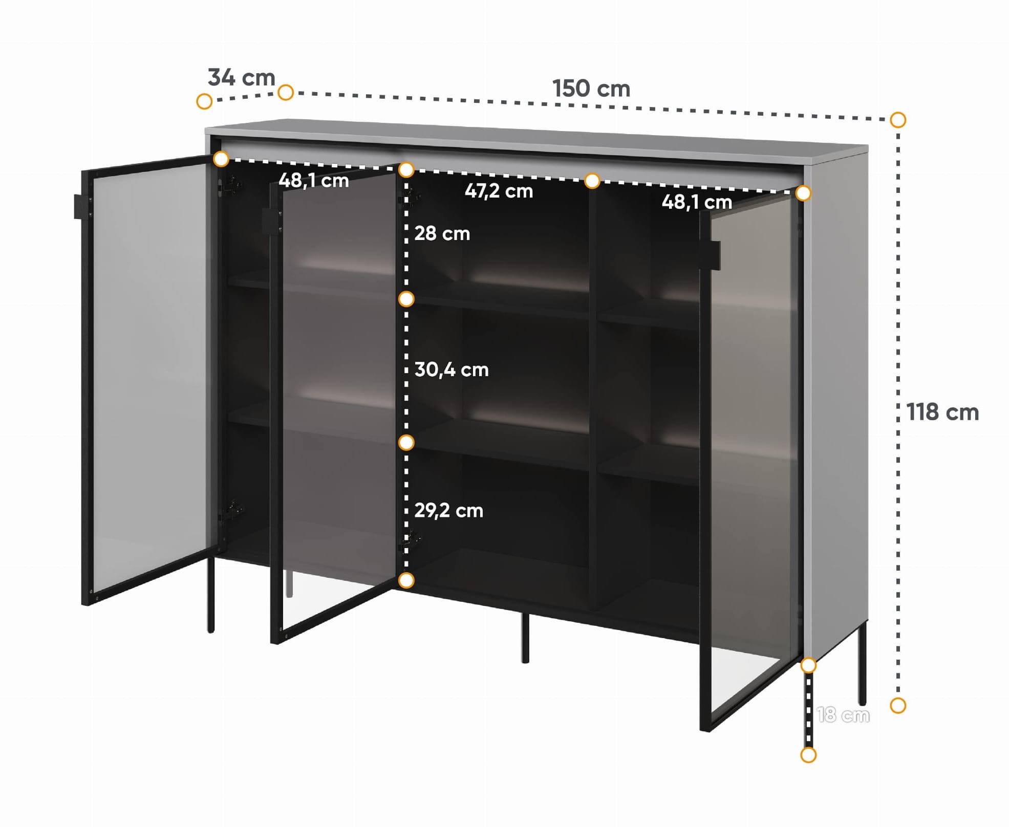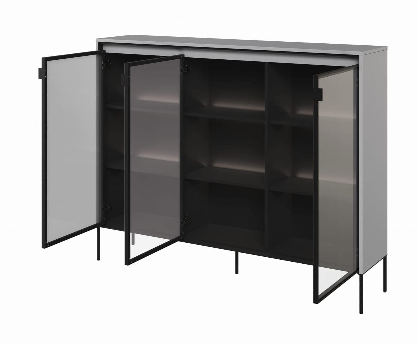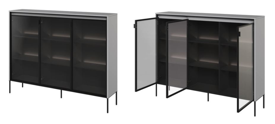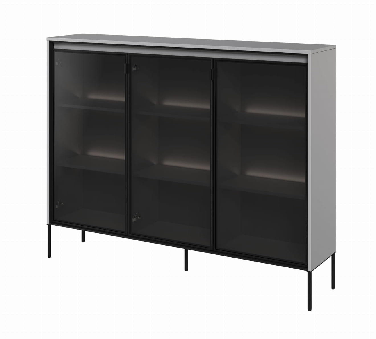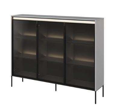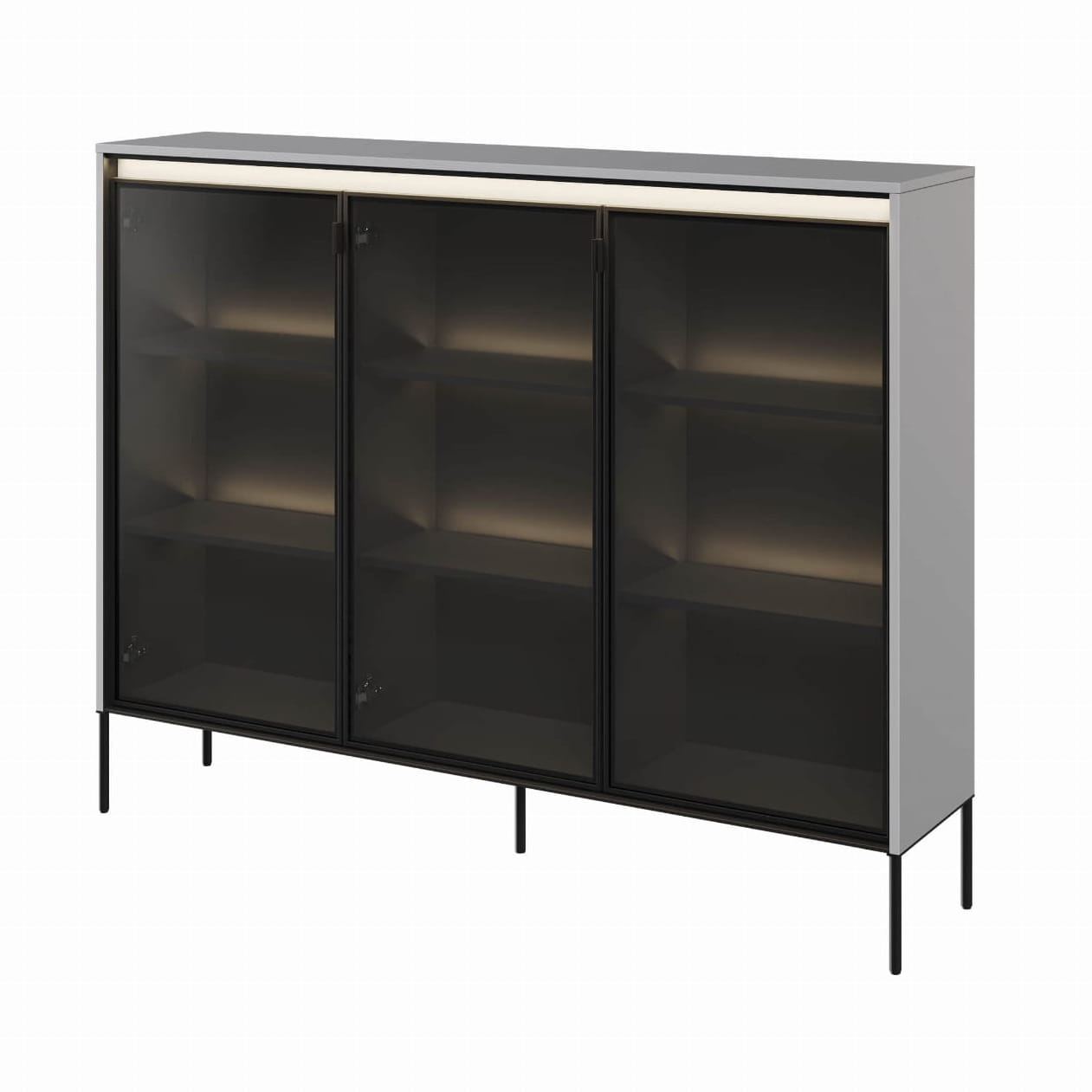 Szara przeszklona komoda 150 cm na nóżkach - LED TREND TR - 08