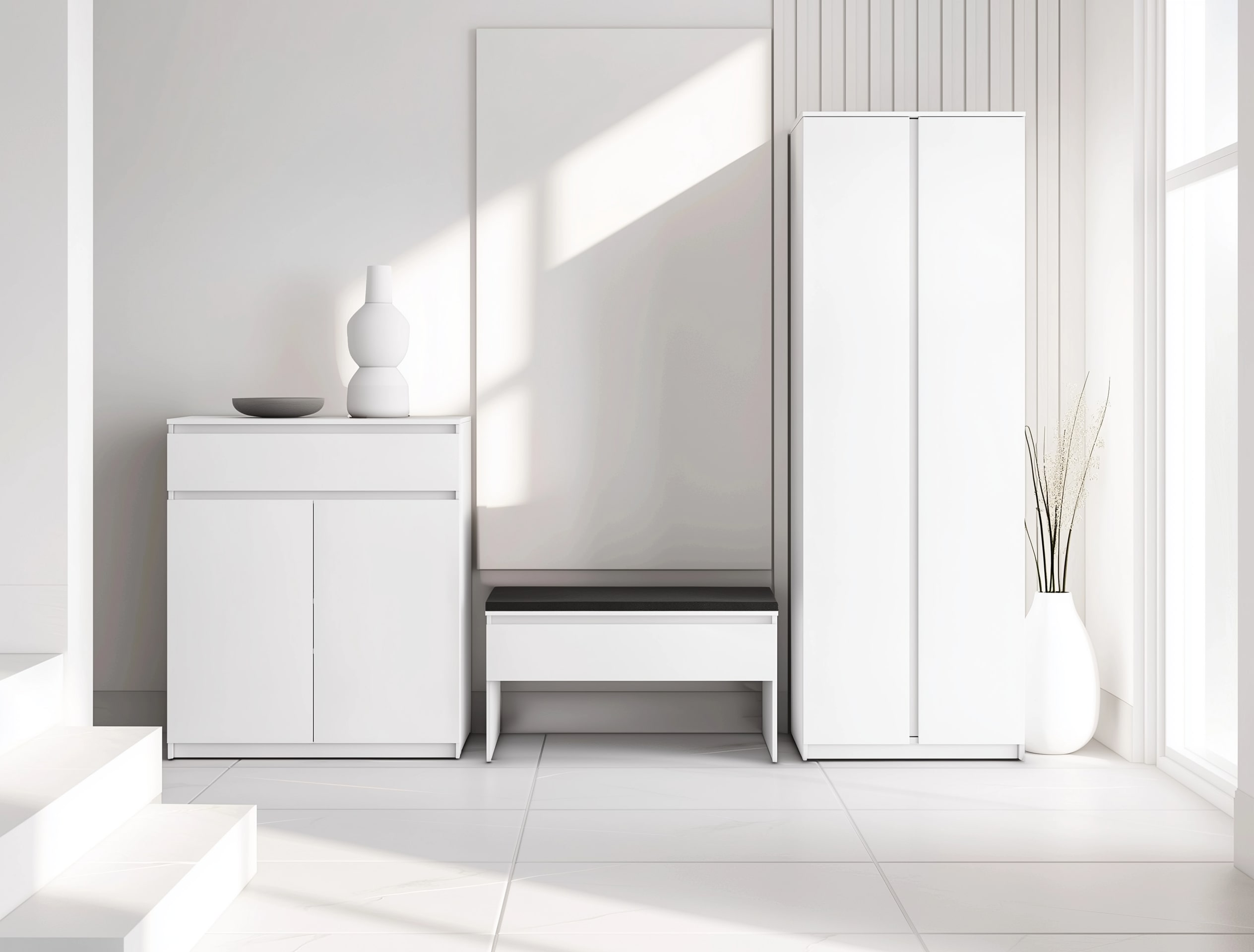 SIMPLY SM-03 to stylowe siedzisko, zaprojektowane z myślą o wygodzie i porządku w przedpokoju. Wykonane z solidnej płyty laminowanej w eleganckim, neutralnym kolorze, doskonale komponuje się z różnymi stylami wnętrz – od nowoczesnych po klasyczne. Miękkie, tapicerowane siedzisko pokryte jest trwałą, ciemną tkaniną, która nie tylko zapewnia komfort podczas zakładania i zdejmowania obuwia, ale także skutecznie maskuje drobne zabrudzenia, co czyni mebel wyjątkowo praktycznym w codziennym użytkowaniu. Przemyślana konstrukcja obejmuje dwie zamykane komory oraz otwartą przestrzeń na dole – idealną do przechowywania butów lub innych niezbędnych przedmiotów. Prosta forma, wysoka jakość wykonania i funkcjonalność czynią z SIMPLY SM-03 nie tylko wygodne siedzisko, ale także estetyczny i praktyczny element wyposażenia każdego przedpokoju.