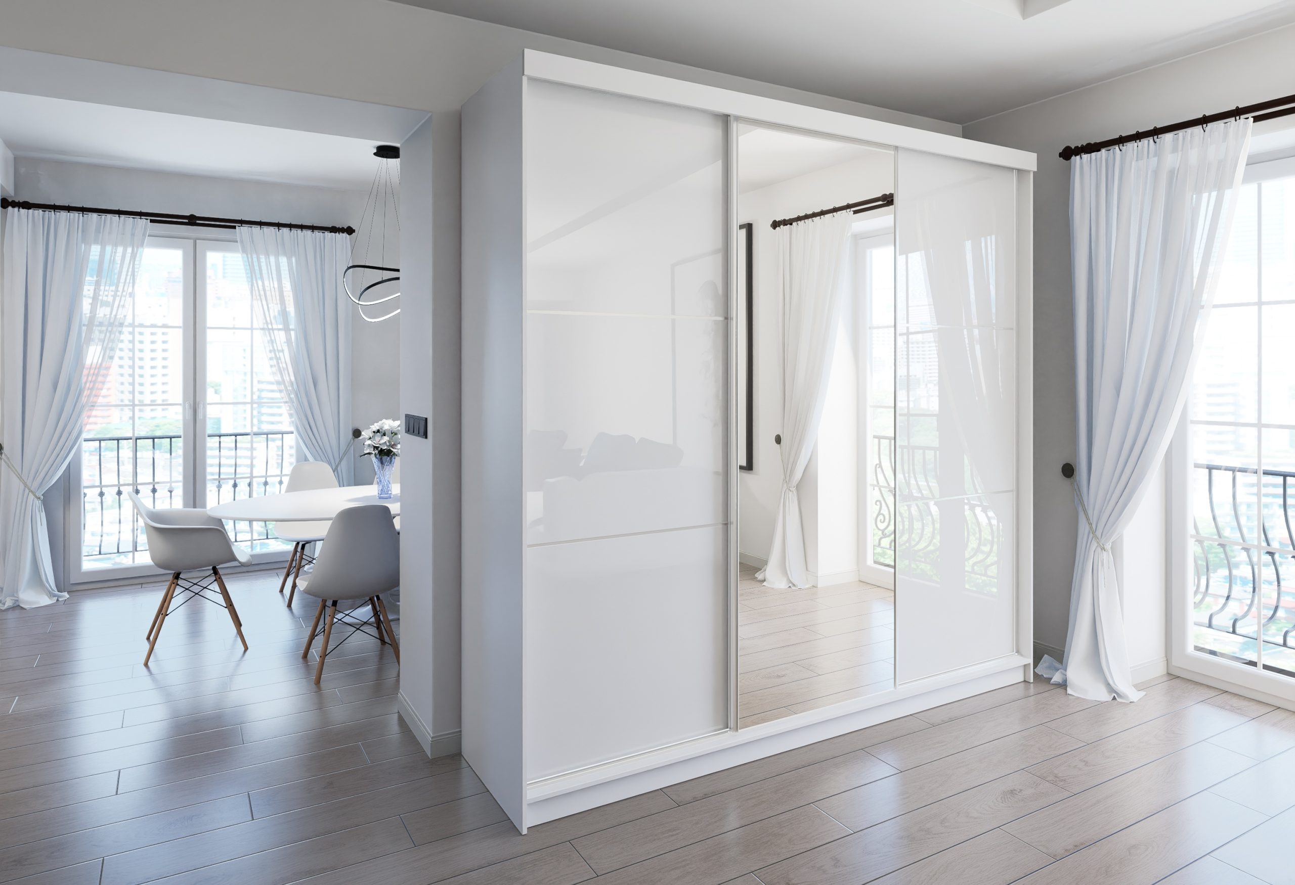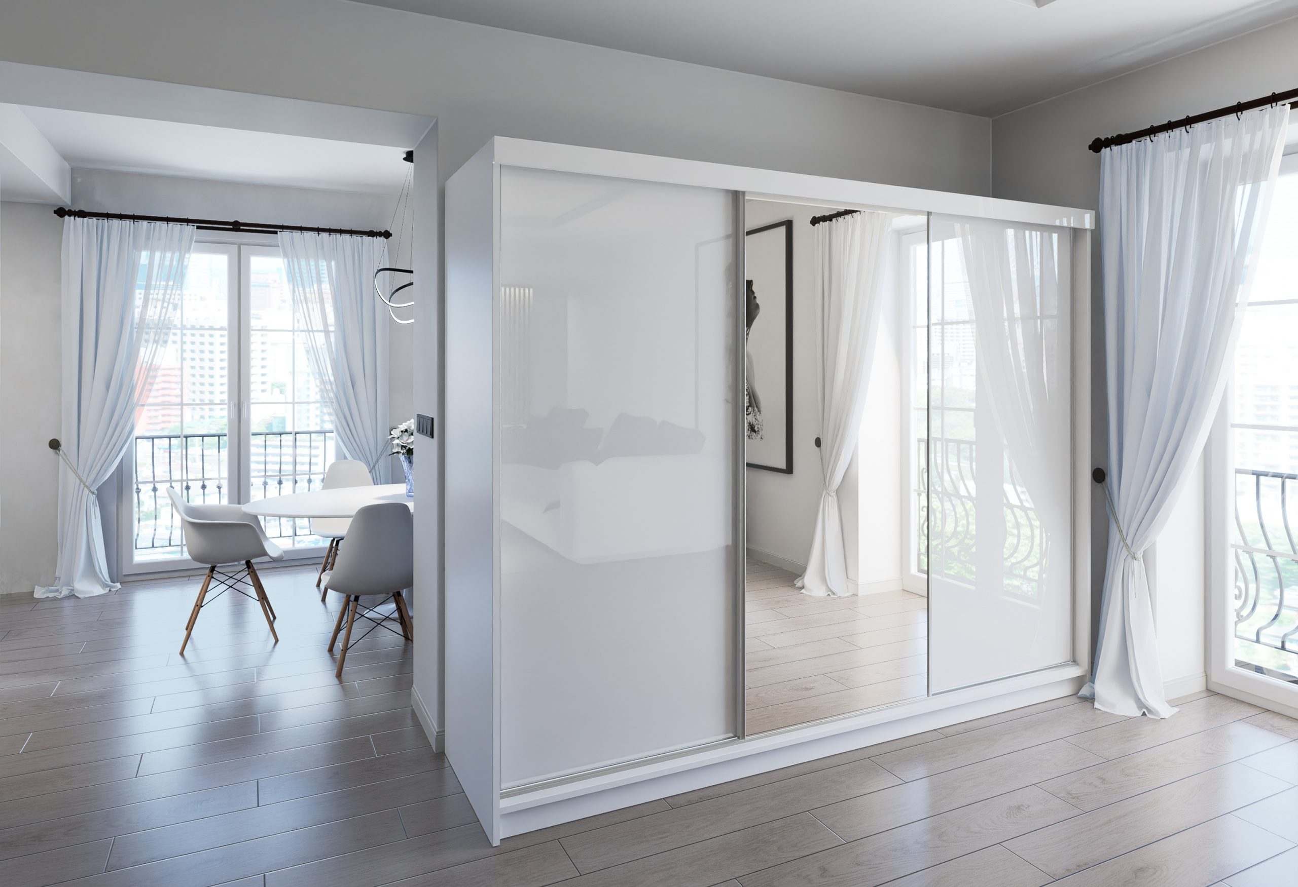 szafa przesuwna na wymiar wysokość do 278 cm, szerokość do 500 cm, kolor połysk MDF z lustrem